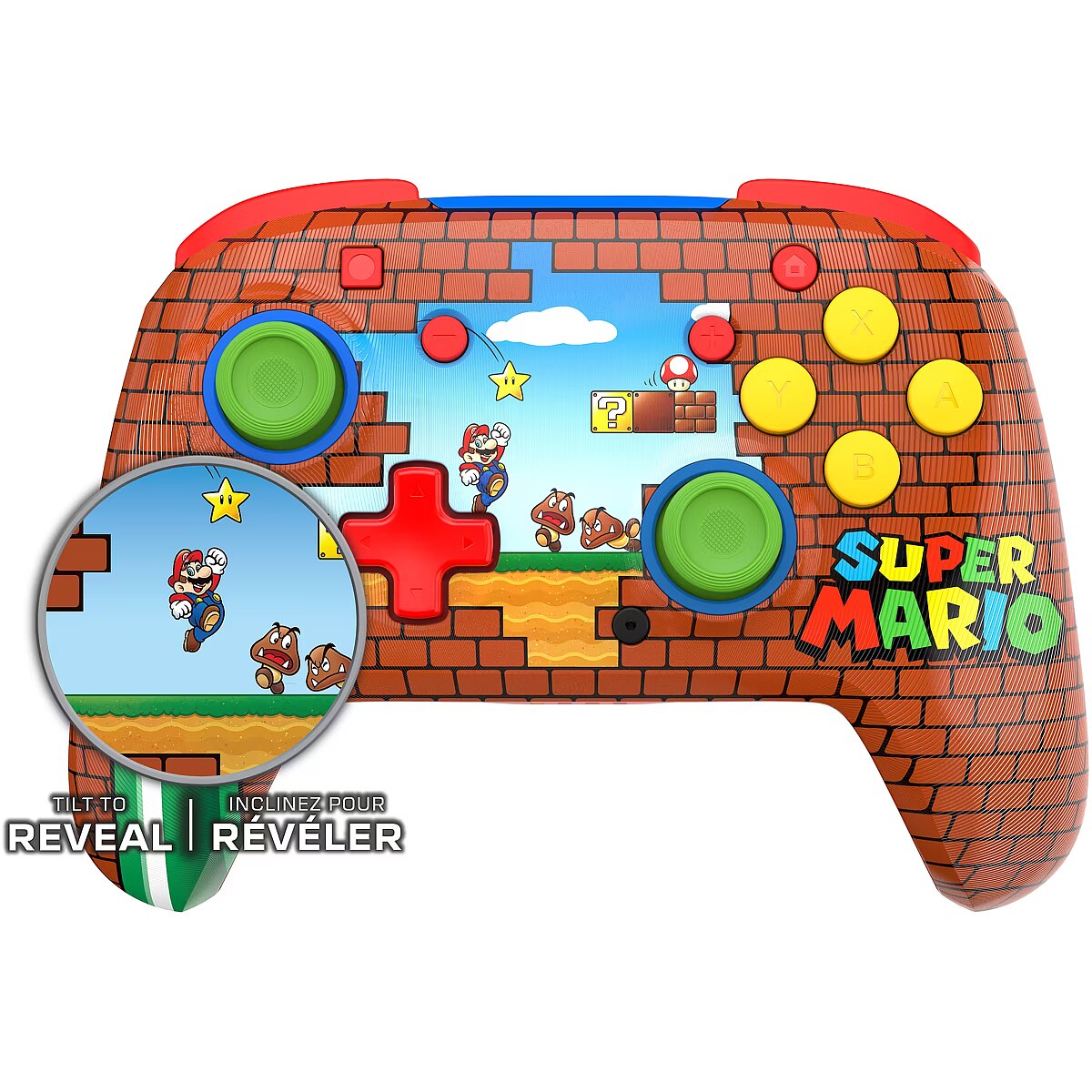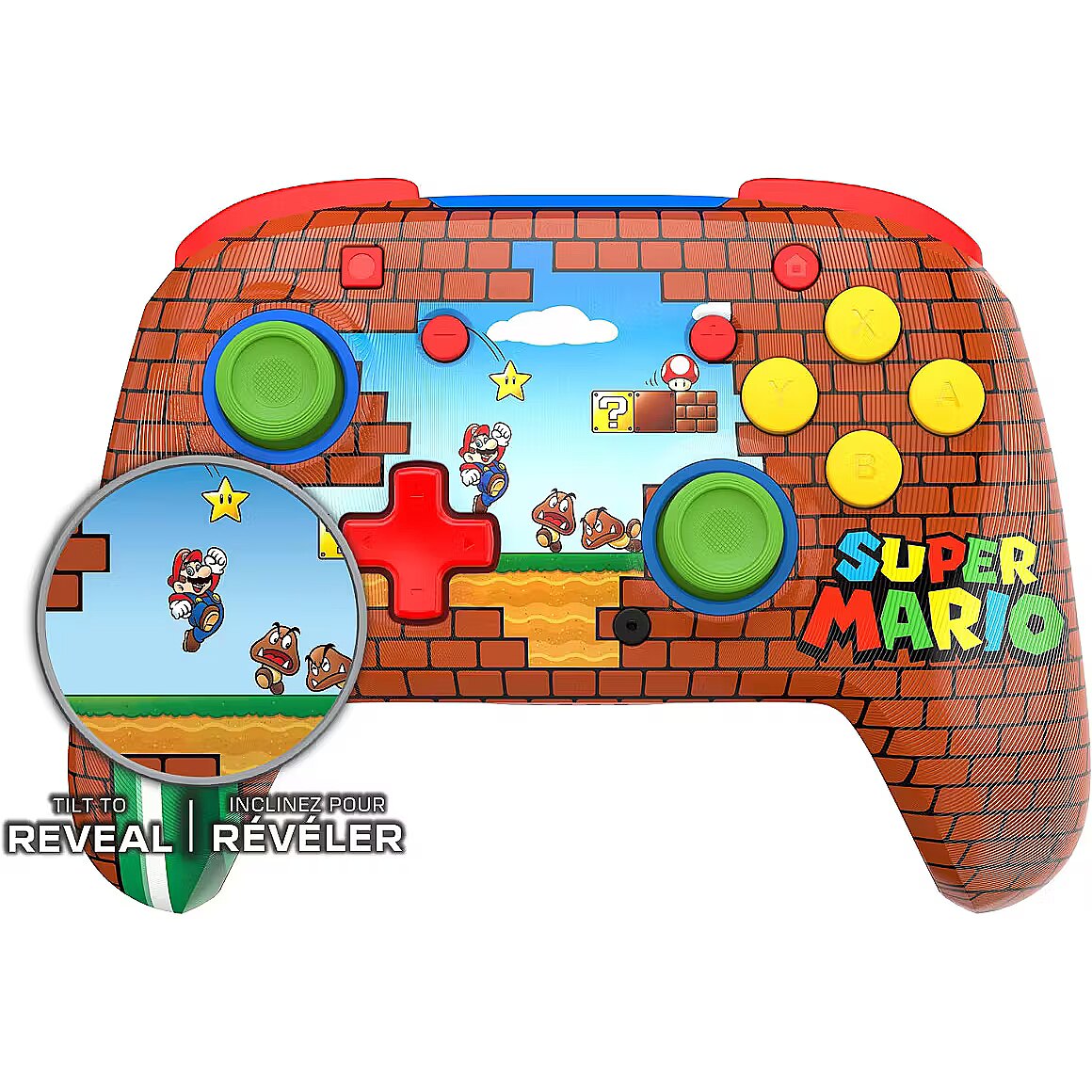 LongDesc - Break some bricks with the Mario Bricks Rematch Wireless Controller for Nintendo Switch™, Nintendo Switch™ Lite, and Nintendo Switch™ – OLED Model. This controller also works with Nintendo Switch™ 2 – C Button not available. Featuring a lenticular design that shifts as you move, two bold brick-themed Mario visuals are revealed that add energy and motion to every session.Built-in motion controls let you steer, jump, and aim with natural precision in games like Mario Kart™ World and Super Mario™ Odyssey. The shifting artwork design responds as you play, creating a more immersive and animated experience. Upgrade your game with this officially licensed Nintendo® controller.