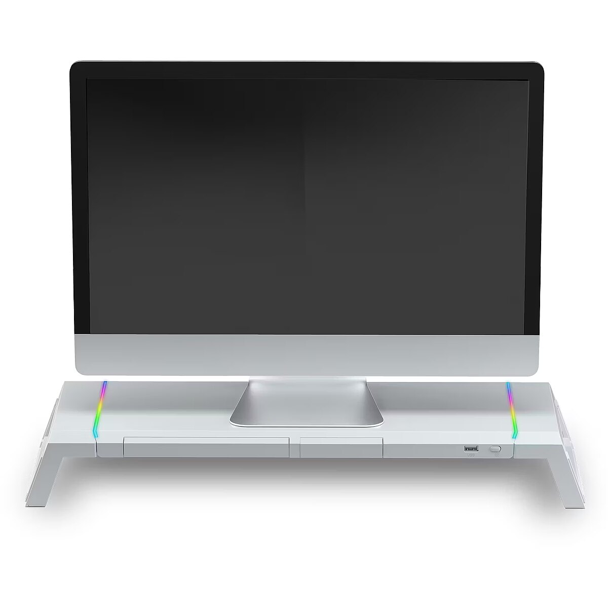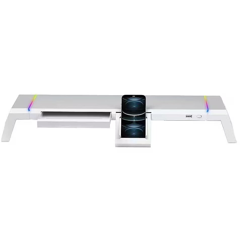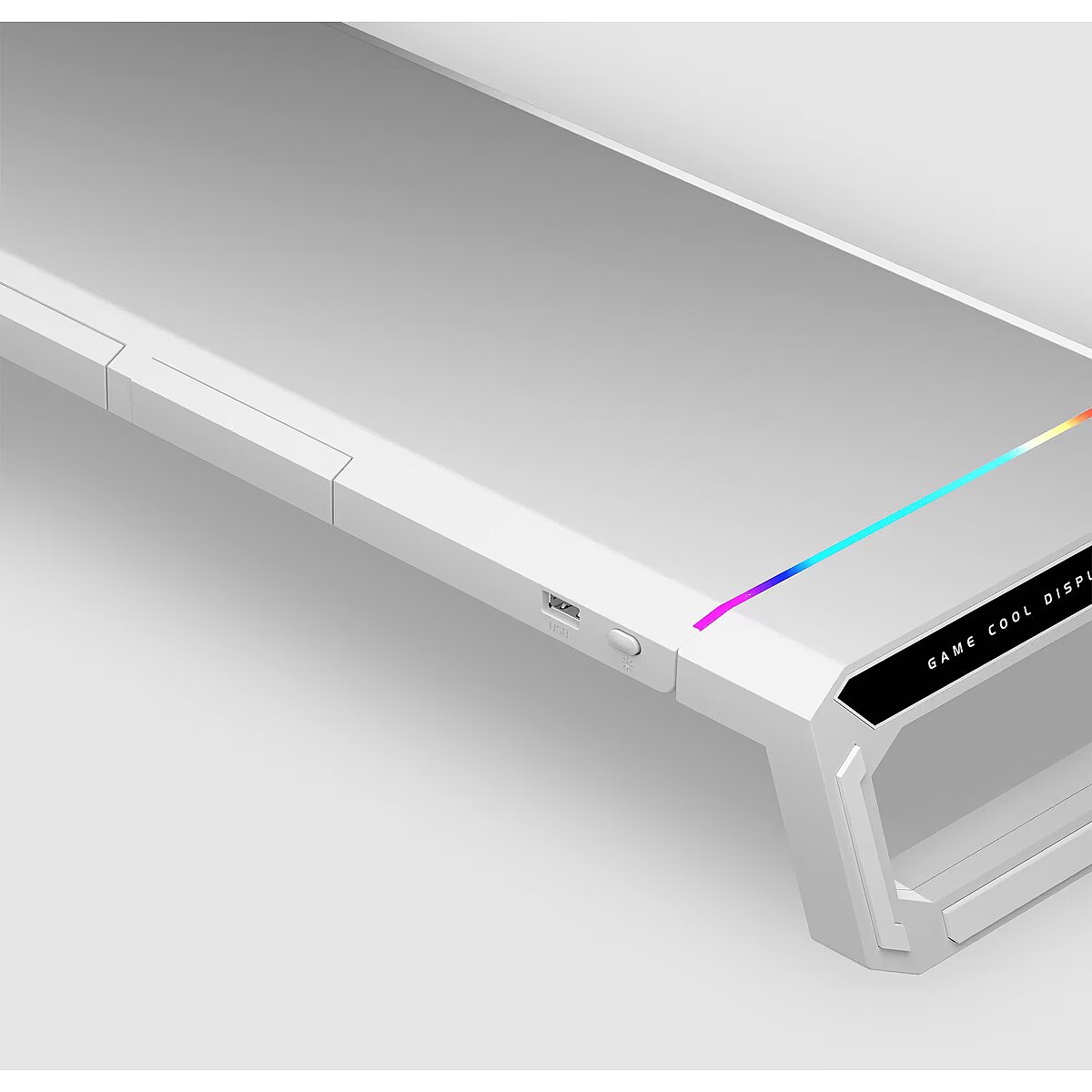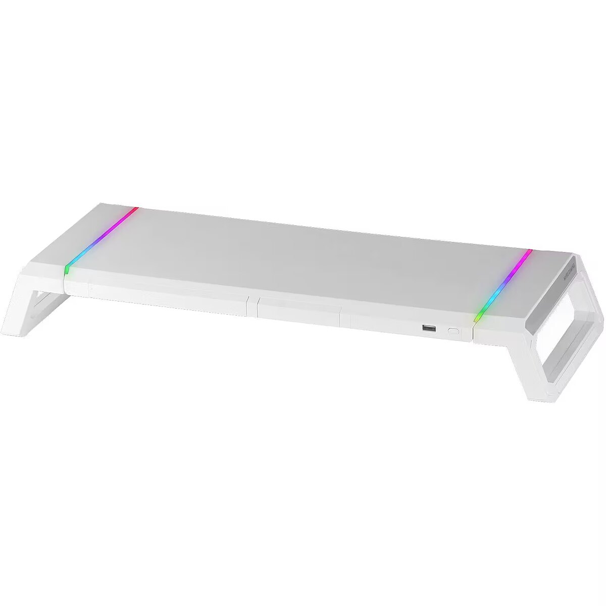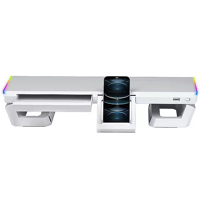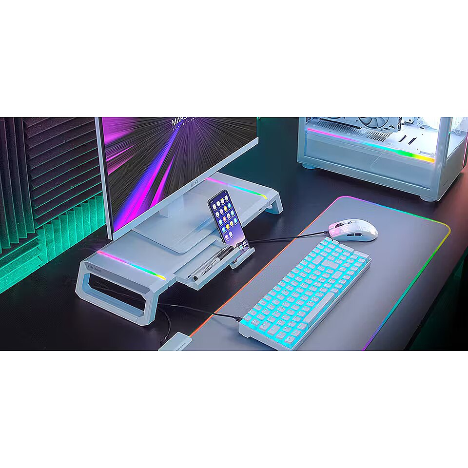 LongProductName - MGS-ONE White Chroma RGB Monitor Stand Adjustable Size Smartphone and Tablet Stand Front USB 2.0