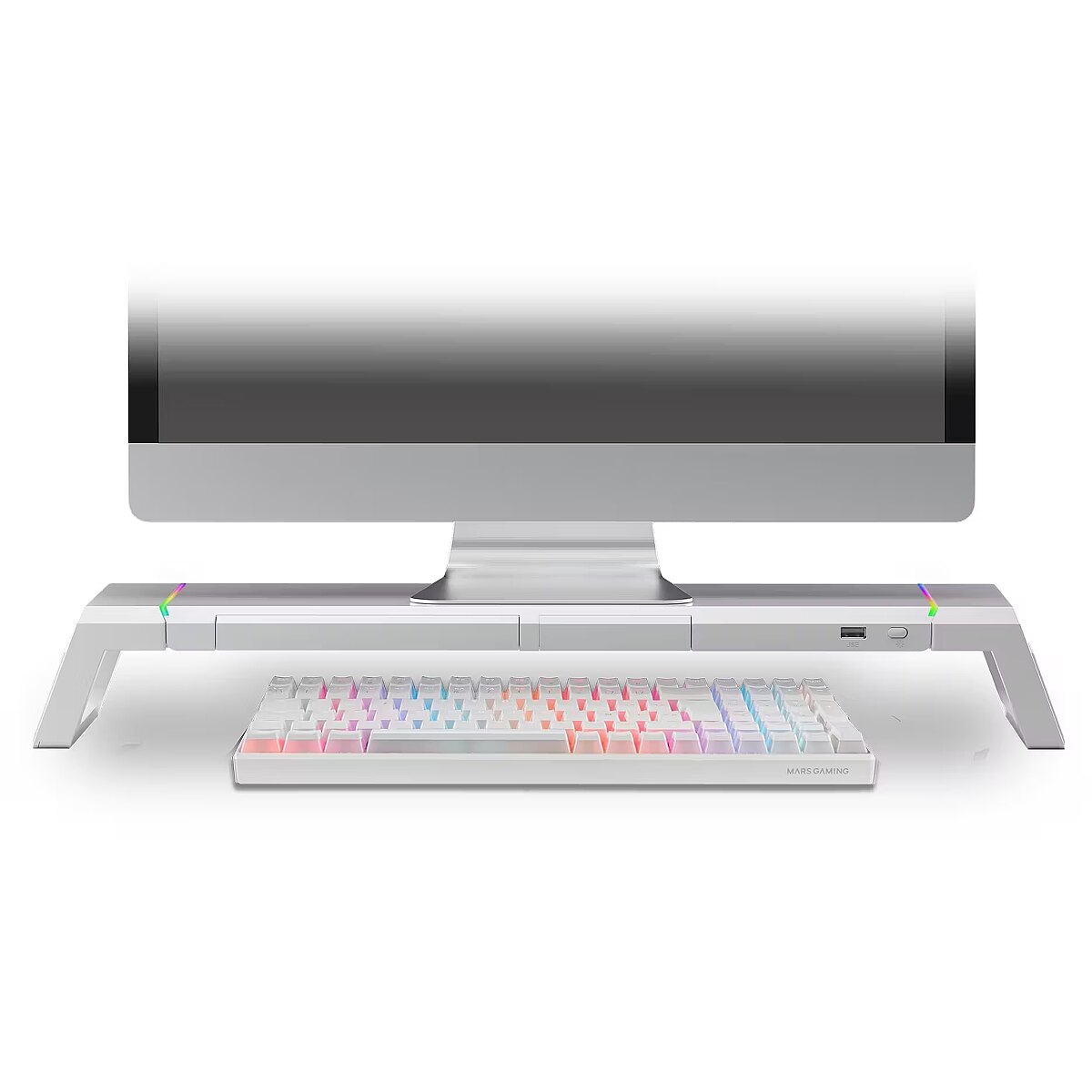 Title - Mars Gaming MGS-ONE White Chroma RGB Monitor Stand Adjustable Size Smartphone and Tablet Stand Front USB 2.0