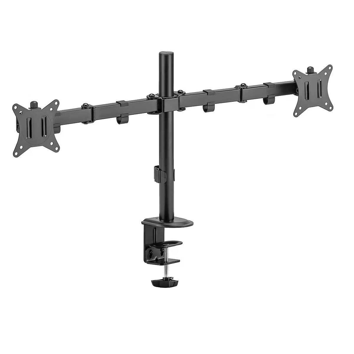 Fits two 13–32″ monitors, up to 9 kg each. Keeps your workspace compact and aligns both screens precisely.