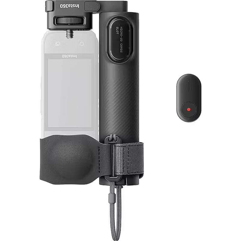 description_en - Flips up to start shooting with X series cameras in seconds and folds down for on-the-go storage. Use as a selfie stick or fold out the built-in tripod. Disappears in 360º footage to achieve the invisible selfie stick effect with X series cameras. Included is the Mini Remote to start or stop recording with ease The Foldable 2-in-1 Selfie Stick (1/4" Mount) flips up in seconds and folds down just as quickly, making it the ultimate on-the-go companion. Its clever 2-in-1 design works as an invisible selfie stick for stunning fake-drone shots, or you can fold out the built-in tripod to set up stable captures with ease. Remaining completely invisible in 360º footage, it creates magical third-person perspectives that look impossible to achieve. Compact and travel-friendly, it folds down to just 16.6 cm — even with your camera still attached — and comes with a pocket-sized Lens Cap for extra protection. It’s the perfect kit with the Mini Remote, with a built-in slot to keep it secure. The Storage Cover adds space for up to two microSD cards. Compatibility X5 X4 X3