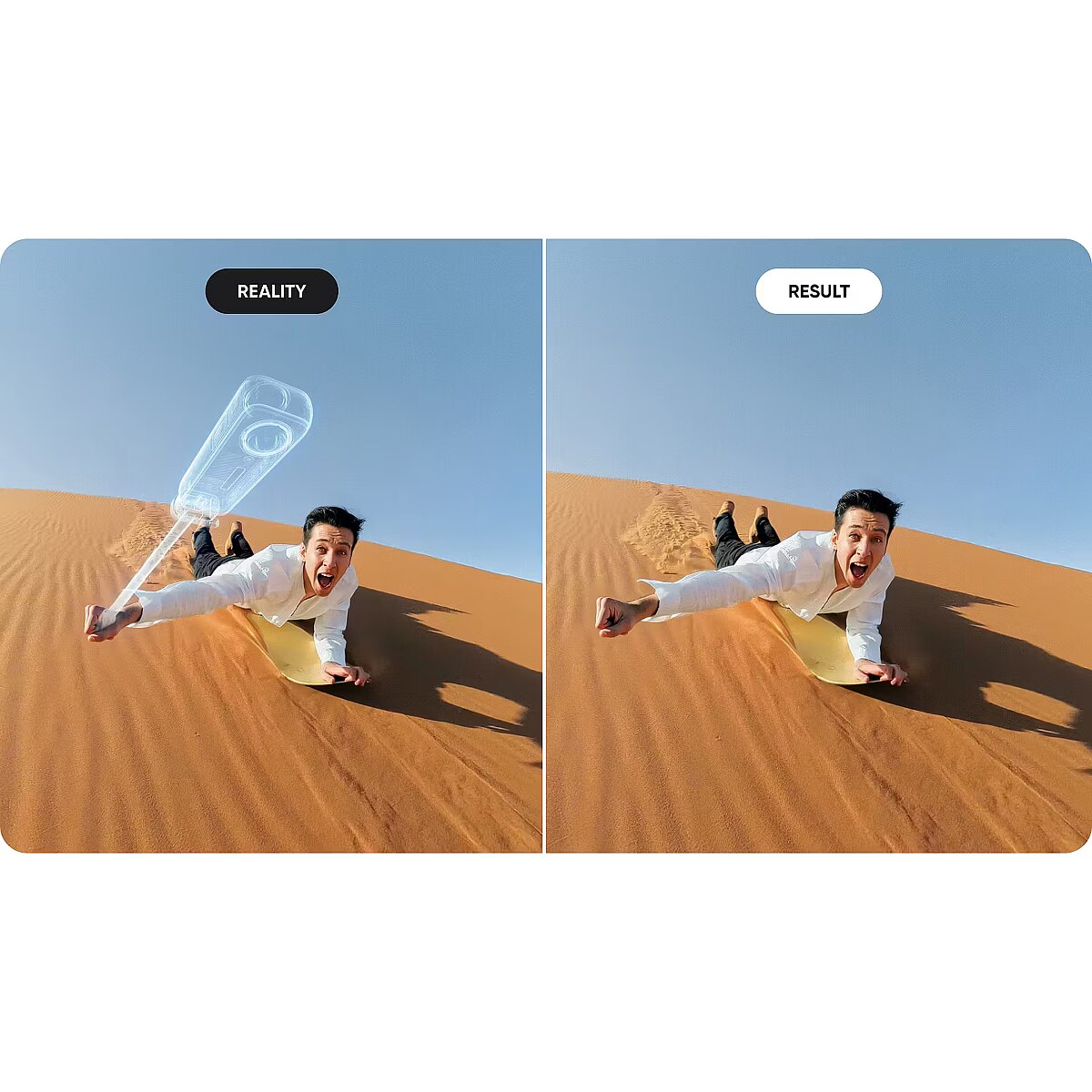 description_et - Paruoštas fotografuoti per kelias sekundes - akimirksniu atidarykite rankinį trikojį ir pradėkite fotografuoti su "Insta360 X" serijos fotoaparatais, tada taip pat greitai sulankstykite jį, kad būtų patogu nešiotis Naudokite jį kaip rankinį trikojį arba atidarykite įmontuotą trikojį, kad galėtumėte fiksuoti stabilius 360° kadrus, jis tampa visiškai nematomas ir sukuria "nematomos asmenukės lazdos" efektą. Taip pat pridedamas mini nuotolinio valdymo pultelis, kad vienu paspaudimu galėtumėte pradėti arba sustabdyti įrašymą. Sulankstoma 2in1 asmenukių lazda yra išmanus ir universalus įrankis, suderinamas su "Insta360 X5", X4 ir X3 fotoaparatais. Dėl sumanios konstrukcijos gaminį galima naudoti kaip nematomą rankinį trikojį įspūdingiems dronus primenantiems kadrams fiksuoti arba išlankstyti įmontuotą trikojį, kad fotoaparatas būtų stabilus. Filmuojant 360º kampu, rankinis trikojis lieka visiškai paslėptas, todėl vaizdas iš trečiojo asmens perspektyvos atrodo profesionaliai. Kompaktiškas ir lengvas, sulankstytas rankinis trikojis yra tik 16,6 cm ilgio, todėl jį lengva pasiimti su savimi - net ir su pritvirtintu fotoaparatu. Komplekte taip pat yra mini nuotolinio valdymo pultelis, kuris turi atskirą lizdą ant lazdos, kad visada būtų saugus. Suderinamas su "Insta360" kameromis X5 X4 Air X4 X3.