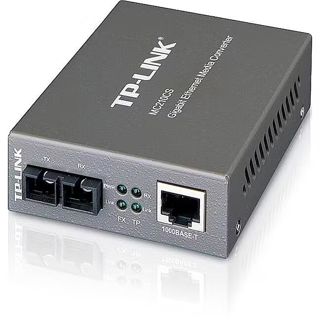 Aprašymas - MC210CS medijos keitiklis leidžia optinį 1000Base-LX/LH signalą konvertuoti į signalą, perduodamą 1000Base-T variniu kabeliu ir atvirkštine kryptimi. Jis veikia pagal IEEE802.3ab 1000Base-T ir IEEE802.3z 1000Base-LX/LH standartus, naudoja vienmodį optinį pluoštą su SC jungtimis. MC210CS, atitinkantis LX tolimojo optinio perdavimo specifikaciją, užtikrina didelės spartos laidinį duomenų perdavimą. Įrenginys priima ir perduoda 1310 nm bangos ilgio signalą. Keitiklis gali veikti kaip atskiras įrenginys arba būti sumontuotas 19' TP-LINK stove. TX prievadas turi automatinio kryžminimo funkciją (Auto MDI/MDI-X). Priekiniame skydelyje yra šviesos diodų indikatoriai, rodantys įrenginio veikimo būseną. Naudodamas vienmodį šviesolaidį, keitiklis MC210CS perduoda optinius signalus iki 15 km atstumu.