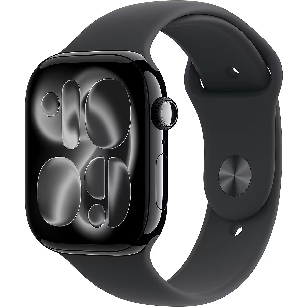 Name - Apple Watch Series 11, Smartwatch black (glossy), aluminum, 46 mm, black sport band M/L, Cellular