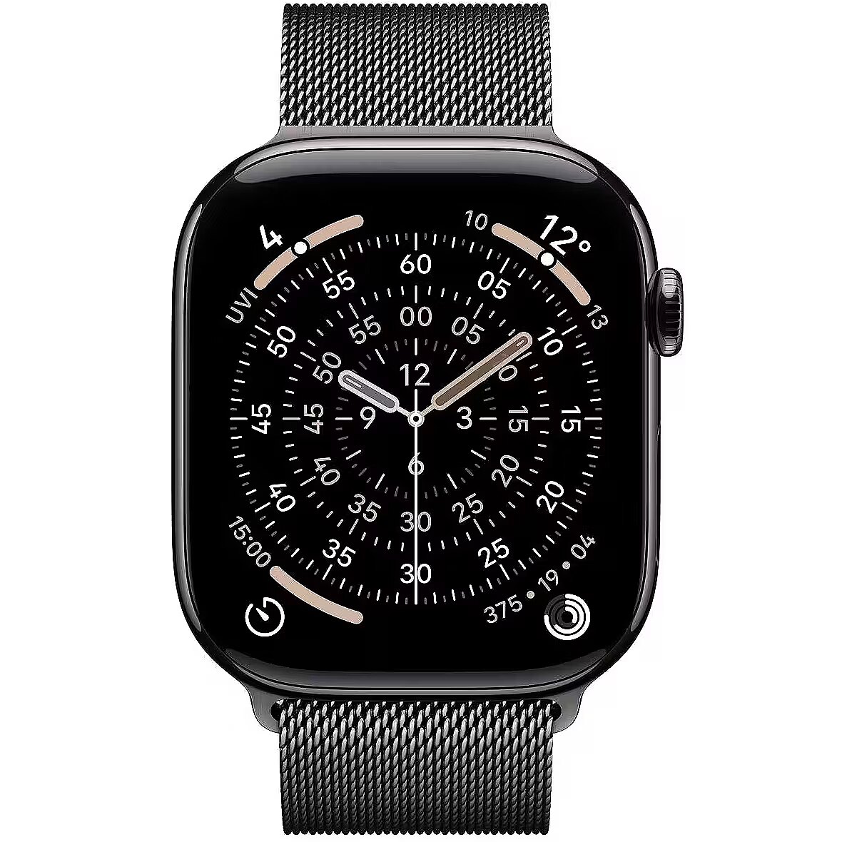 Pavadinimas - "Apple Watch Series 11" GPS + mobilusis ryšys 46 mm šiferio titano korpusas | Šiferio Milano kilpa - M/L
