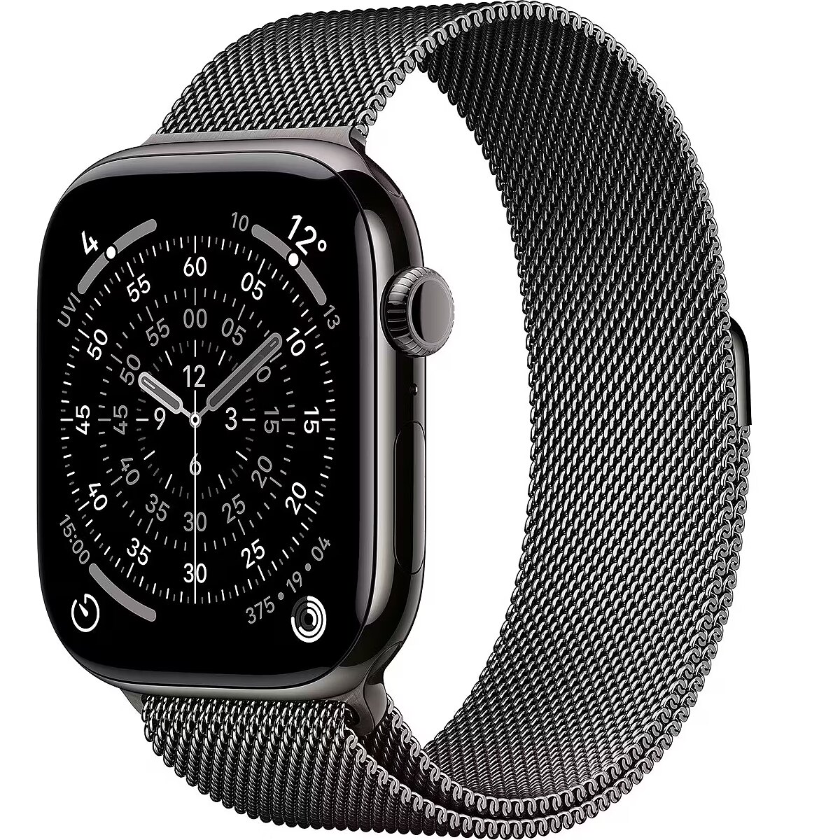 Apple Watch Series 11, GPS + Cellular, Slate Titanium, Black Milanese Loop (S/M) - 46mm