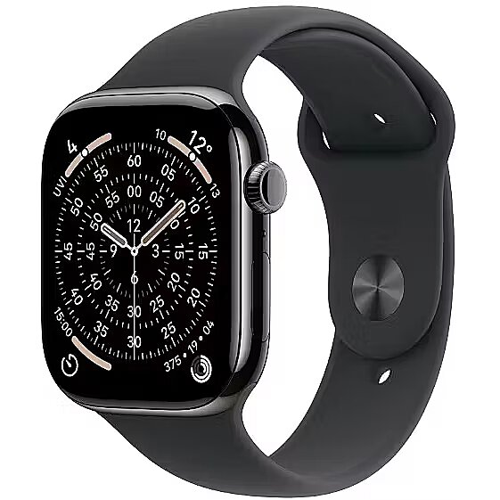 Kitos funkcijos - Jutikliai Elektrinis širdies jutiklis Trečiosios kartos optinis širdies jutiklis Kraujo deguonies jutiklis Temperatūros jutiklis Kompasas Nuolat veikiantis aukščio matuoklis Didelio g jėgos akselerometras Didelio dinaminio diapazono giroskopas Aplinkos apšvietimo jutiklis Gylio matuoklis iki 6 m Vandens temperatūros jutiklis Ekranas Nuolat veikiantis „Retina“ OLED LTPO3 ekranas su plačiais matymo kampais „Ion-X“ priekinis stiklas, 2 kartus atsparesnis įbrėžimams (aliuminio korpusai) Safyro priekinis stiklas (titano korpusai) Iki 2000 nitų didžiausias ryškumas Mažiausias ryškumas 1 nitas 326 taškai colyje
