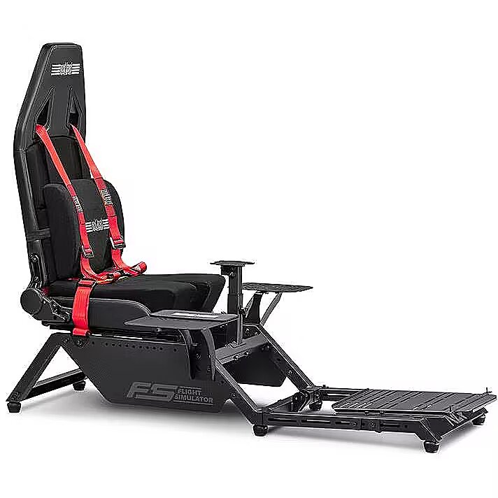 Technical details > Other features - Includes Buttkicker® adaptor, Next Level Racing® four-point harness, and lumbar support. The Flight Simulator Cockpit offers a wide range of configurations to suit different classes of flight, including Combat, Space, Commercial, and General Aviation. A fully dedicated flight seat has been designed to suit different users and class of flight with a wide range of adjustments. The Flight Simulator Cockpit is compatible with a wide range of electronics such as yokes, joysticks, rudders, and throttles for all major brands.