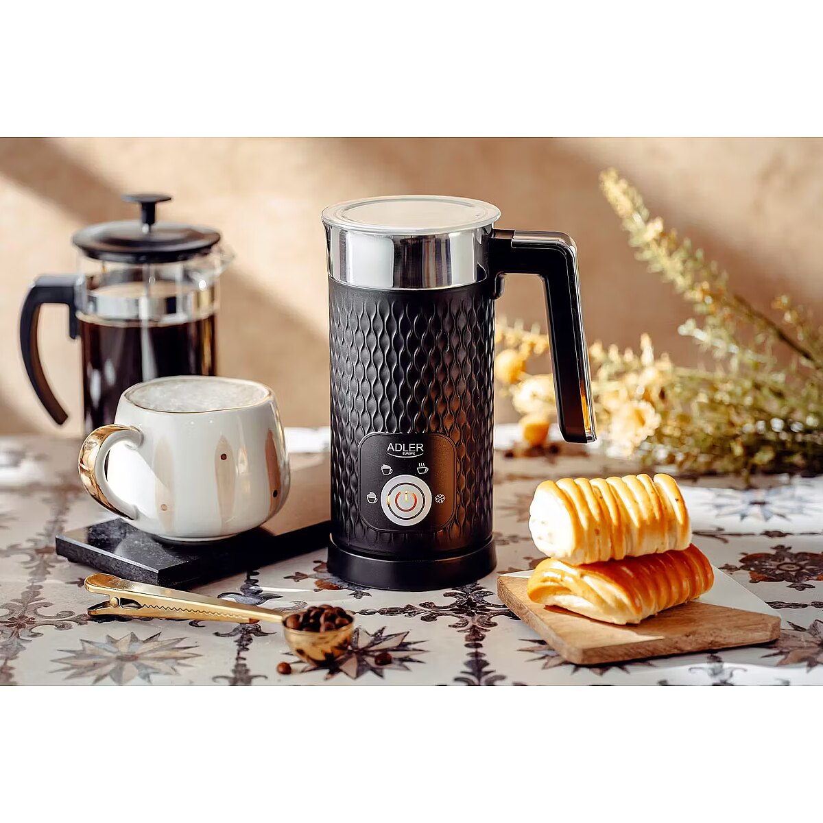 Dane techniczne: Dodatkowe informacje - 4 funkcje: pianka cappuccino, pianka latte, podgrzewanie, zimna piana | powłoka nieprzywierająca | przezroczysta pokrywka z uszczelką | możliwość speniania napojów roślinnych