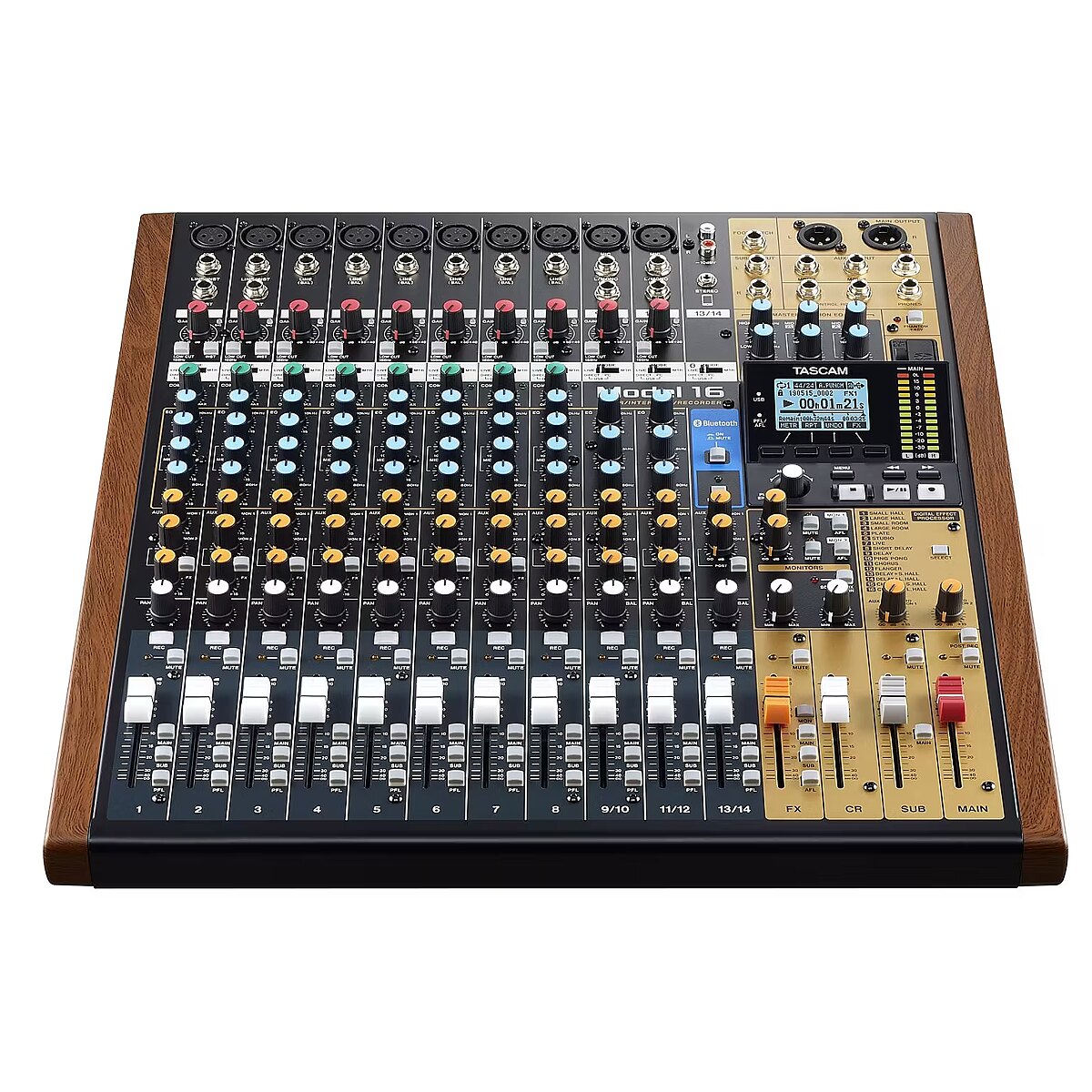 productName - "Tascam MODEL 16" garso maišytuvas 16 kanalų 20 - 30000 Hz Juoda, auksinė, medinė