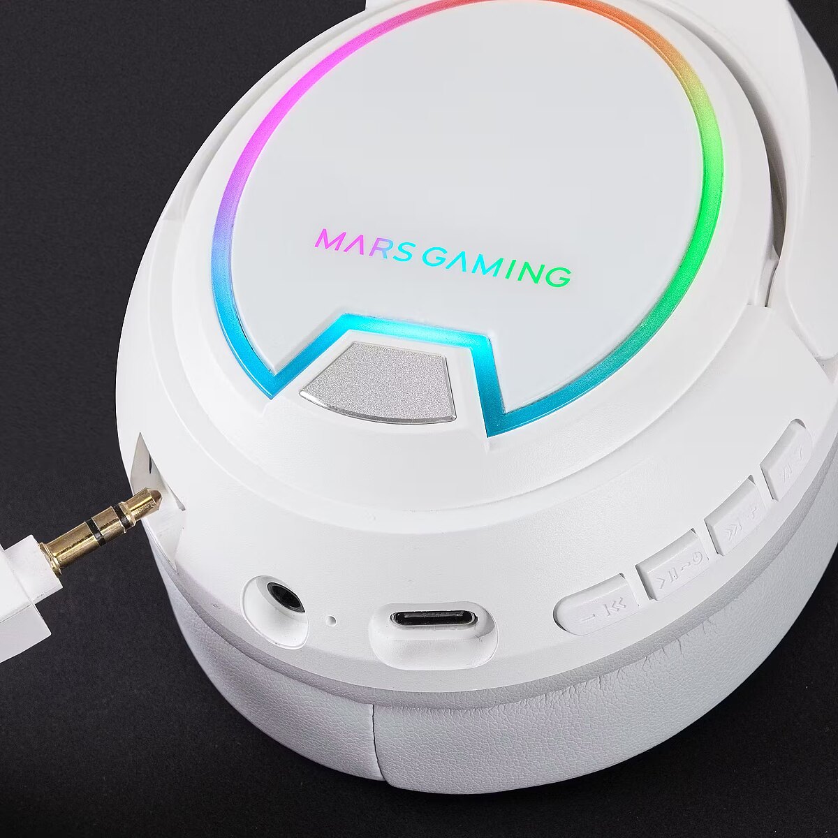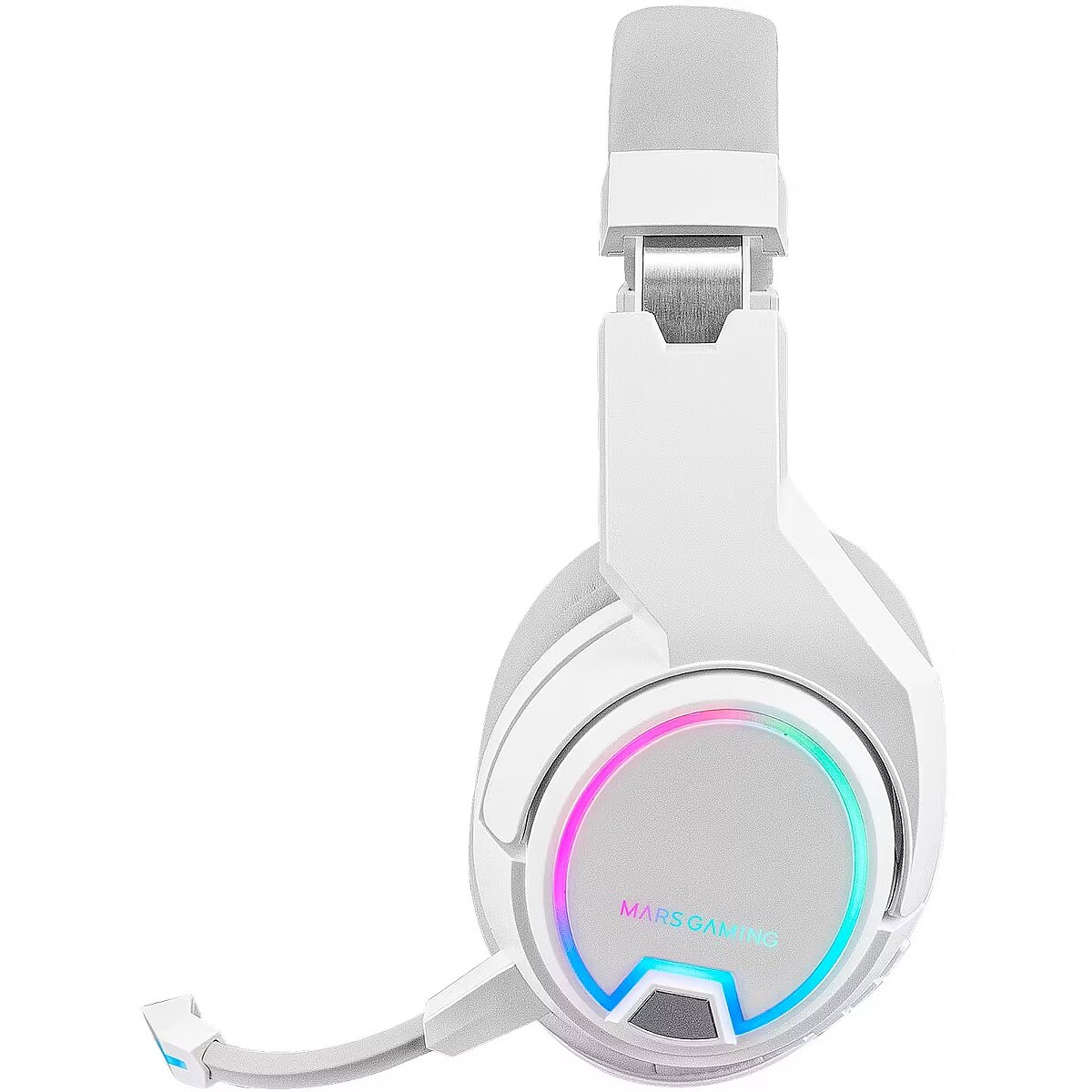 Title - Mars Gaming MHW-100 White Wireless Headset ARGB Flow Removable ENC Microphone Ultra-lightweight Active ENC + Passive Noise Cancellation Universal Compatibility