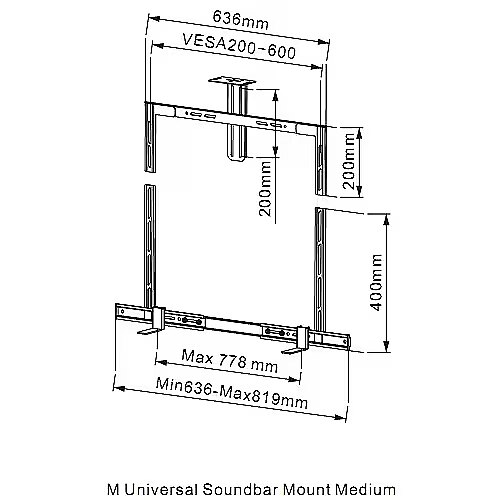LongDesc - When you turn your TV from side to side you want your soundbar to move with the TV screen.M Universal Soundbar Mount is made especially for turnable flat screen TV.The soundbar always faces you so the picture and sound and picture never loses sync.To keep your soundbar flush with your flat screen TV, the height and depth of the Sound Bar Mount can be adjusted to fit different sizes and shapes of soundbars.The metal finish adds a stylish accent to the sound bar bracket and it can be used with virtually any TV wall mount.M Universal Soundbar Mount and Camera Holder Medium holds a maximum weight of 10kg and provides secure support for your sound bar for TV´s up to 70". The flexible design can be used with any wall mount that accommodates VESA® mounting patterns up to 600 x 400mm. The mount also gives you the function to connect a web camera or other camera device like Xbox or Playstation camera.