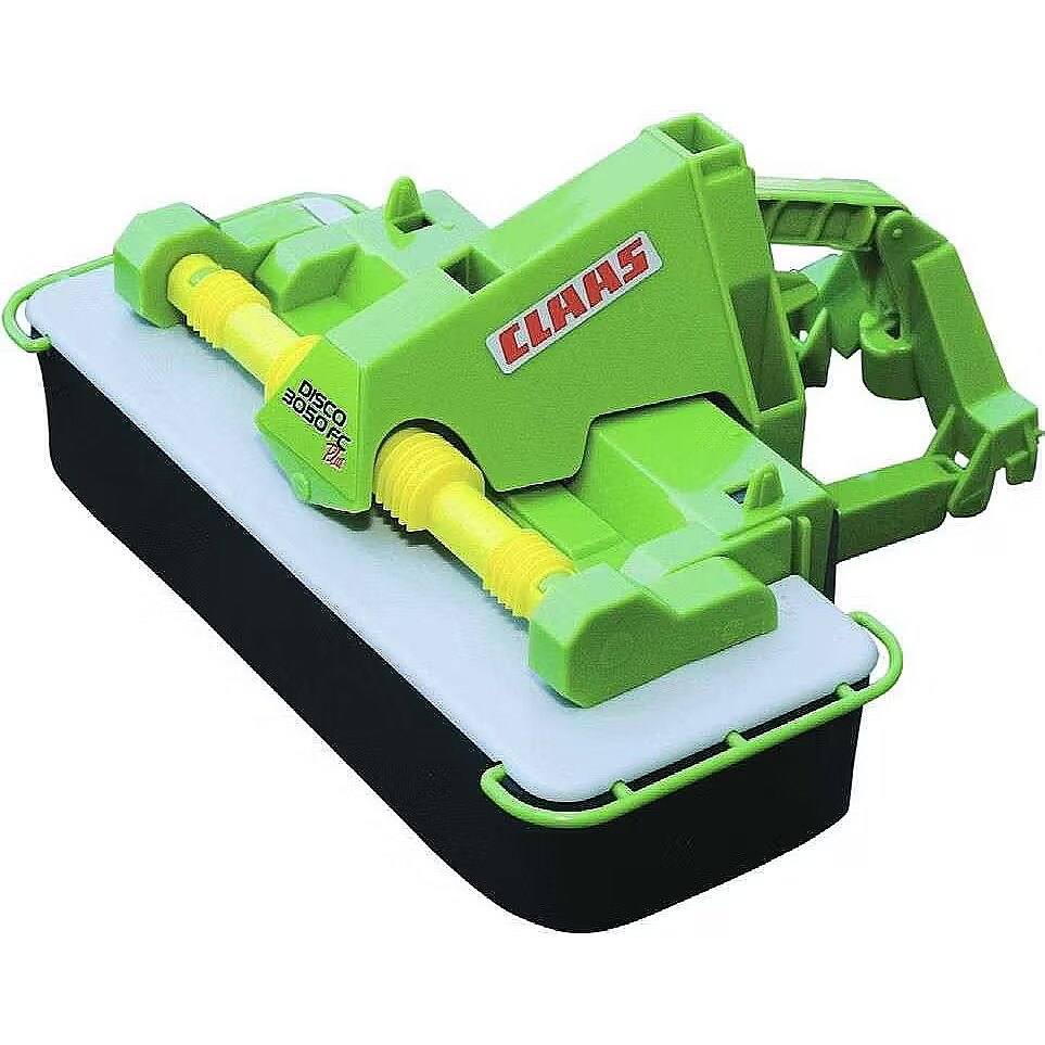 Description - Claas front disc mover Disco 3050 FC Plus The Claas Disco 3050 front mower is a faithful copy of the real 1:16 scale model. It is made of high quality plastic and is intended for children over 3 years. Main features: Rubber protective aprons Two positions: working and transport Fits all Bruder tractors