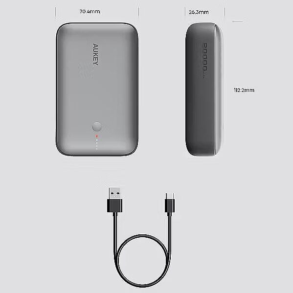 Description - Power bank AUKEY PB-Y57 Spark Mini + kabel AUKEY Quick Charge USB-C - USB-A Pojemny (20000 mAh) Power bank niewiele większy od karty kredytowej! Miniaturowe rozmiary - duża moc 22.5W Prezentowany model to jeden z najmniejszych i najlżejszych power banków 20000 mAh, jakie dostępne są aktualnie na rynku. Wyposażony został w dwa porty USB-A i USB-C, a także w technologie Quick Charge 3.0 oraz Power Delivery 3.0. Podobnie jak w wielu innych urządzeniach marki Aukey, w tym modelu o minimalistycznym designie nie zabrakło również inteligentnej ochrony, a więc szeregu zabezpieczeń, które zapewniają bezpieczeństwo ładowanym urządzeniom. Ten kompaktowy powerbank o pojemności 20000 mAh to idealne rozwiązanie dla osób potrzebujących mobilnego i wydajnego źródła energii. Dzięki szybkiemu ładowaniu USB-C (20 W) i USB-A (22,5 W), pozwala na błyskawiczne ładowanie smartfonów, tabletów i innych urządzeń, a jego niewielkie rozmiary sprawiają, że jest niezwykle poręczny. Szybkie ładowanie iPhone. Dzięki USB-C Power Delivery 20W Spark Mini: Pomimo dużej pojemności, ten power bank zachowuje wyjątkowo kompaktowy kształt, mieszcząc się w dłoni, dzięki czemu jest niezwykle przenośny i wygodny w noszeniu. Duża pojemność: Dzięki imponującej pojemności 20000 mAh zamkniętej w kompaktowej konstrukcji ten powerbank oferuje rozbudowane możliwości ładowania, umożliwiając wielokrotne ładowanie większości smartfonów Szybkie ładowanie: Dzięki mocy wyjściowej 20 W przez port USB-C, ten powerbank umożliwia szybkie i wydajne ładowanie urządzeń, minimalizując przestoje i zapewniając łączność wtedy, gdy jej najbardziej potrzebujesz. Mały powerbank 20000 mAh Mimo imponującej pojemności, ten power bank zachowuje wyjątkow małe wymiary 11 x 7 x 2,6 cm, dzięki czemu mieści się w dłoni. To idealne rozwiązanie, gdy potrzebujesz energii w podróży możesz go zawsze mieć przy sobie, bez obciążenia plecaka czy torby. Jest lekki i poręczny, co czyni go niezwykle wygodnym w codziennym użytkowaniu. Pojemność 20000 mAh więcej energii na dłużej Ten power bank oferuje aż 20 000 mAh pojemności, co pozwala na wielokrotne ładowanie Twoich urządzeń. Dzięki niemu bez problemu naładujesz swojego smartfona kilka razy, a także zasilisz większe urządzenia, jak tablety. To doskonałe rozwiązanie na dłuższe wyjazdy, gdzie dostęp do gniazdka może być ograniczony. Szybkie ładowanie oszczędzaj czas Power bank wyposażony jest w port USB-C o mocy 20 W, co pozwala na szybkie i efektywne ładowanie urządzeń. Już nie musisz czekać godzinami, aby Twoje urządzenie było gotowe do użytku teraz możesz je naładować w rekordowym czasie i zawsze być w kontakcie, kiedy najbardziej tego potrzebujesz. Wielofunkcyjność i wygoda Z dwoma portami USB-A i USB-C masz możliwość ładowania dwóch urządzeń jednocześnie. Bez względu na to, czy potrzebujesz naładować smartfon, tablet czy inne urządzenia, ten power bank zapewni Ci odpowiednie źródło energii. Dzięki szybkiemu ładowaniu 22,5 W przez port USB-A, każdy Twój sprzęt będzie naładowany szybko i efektywnie. Bezpieczeństwo i styl Power bank posiada zaawansowane systemy zabezpieczeń, które chronią Twoje urządzenia przed przegrzaniem, przepięciami czy przeciążeniem. Dzięki wadze wynoszącej zaledwie 322g, to połączenie funkcjonalności i elegancji, które spełni Twoje oczekiwania.