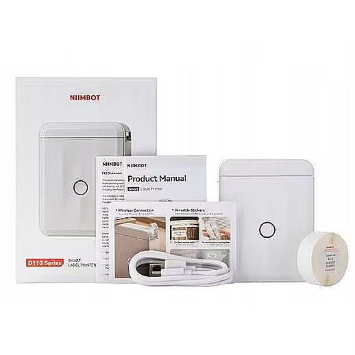 Description - NIIMBOT D110 M WHITE Portable thermal label printer for home, office and small business users The Niimbot D110 is a portable thermal printer that is ideal for home, office and commercial use. The printer makes it quick and easy to print labels, receipts and other documents without the need to be connected to a computer. Thanks to its thermal technology, the printer does not need ribbon to print, instead using special thermal paper that reacts to heat. Print width: 25mm Print resolution: 203 dpi Printing type: thermal ink-free Printing speed: up to several labels per second Connectivity: Bluetooth Power supply: built-in 1500 Supported operating systems: iOS, Android Weight: 149g Set includes 1 roll of labels Additional label rolls and transparent label rolls are available separately. Here is a list of the features available in the app: Create stickers with multiple elements such as camera images, QR codes and others that generate automatically, lines and other shapes, emoticons and pre-made logos, as well as the current time and date. Entering text in the font, size and number of lines of your choice. Addition of Excel tables and images. Generation of barcodes, e.g. EAN-13 or your own product code. Printing of serially numbered labels. Scanning and printing of codes.