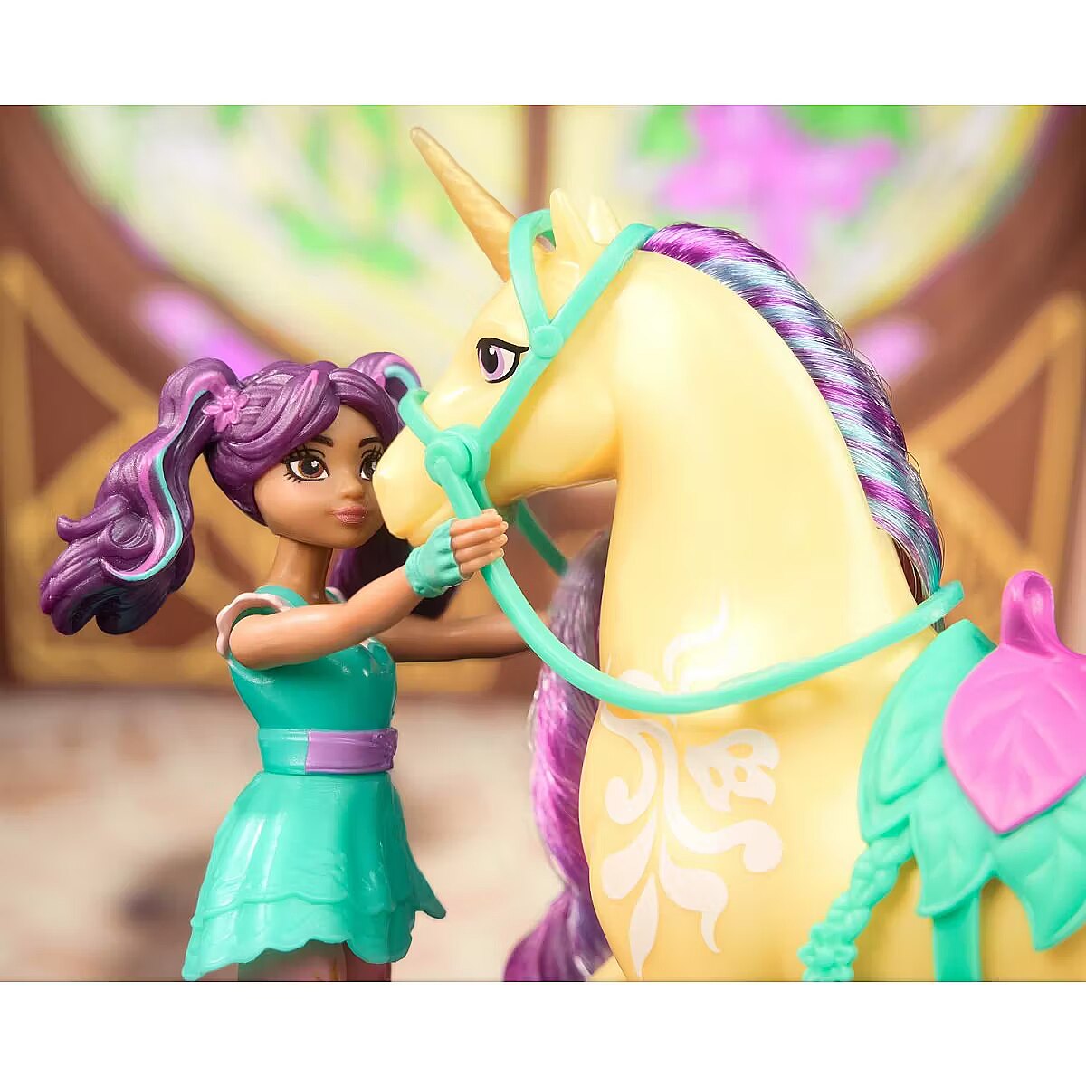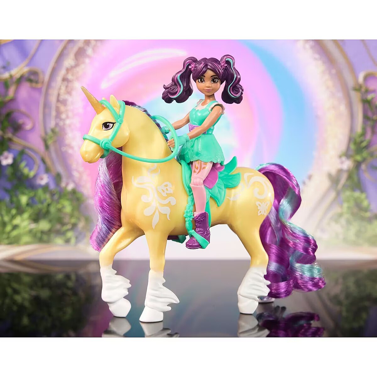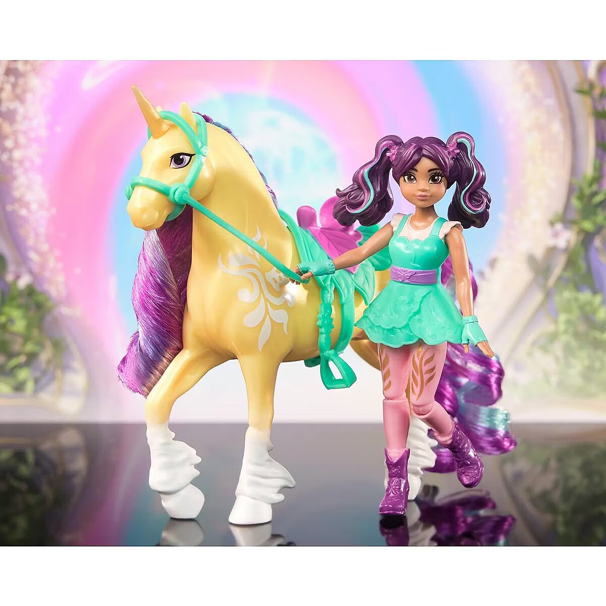 LongDesc - Celebrate the bond between rider and unicorn with the Unicorn Academy Ava & Leaf Set. Inspired by the NETFLIX animated show and best-selling book series where friendship reins, this set will spark endless imaginative storytelling. 4.5-inch Ava features realistic true-to-show details and 7 points of articulation for dynamic poses. Leaf stands at 5 inches tall, complimenting Ava’s look with Plant Magic markings and brushable purple and teal mane and tail (brush included). As you play, pose Ava to sit on Leaf and ride into adventure. With the removable bridle and saddle accessories, Ava can securely stay in place on Leaf. For more ways to experience Unicorn Academy with your favorite characters, look for the other small dolls, including Sophia, Layla, Isabel, Valentina, and their unicorns (sets sold separately) and expand your world. For kids who enjoy unicorns and horse toys, dolls & accessories, doll house play, collectibles, plush toys and more, Unicorn Academy toys are fun birthday gifts for girls or gifts for any occasion. Experience enchanting Unicorn Academy adventures with the Ava & Leaf Set.Includes: 1 Doll, 1 Unicorn, 1 Removable Saddle, 1 Removable Bridle, 1 Hair Styling Tool