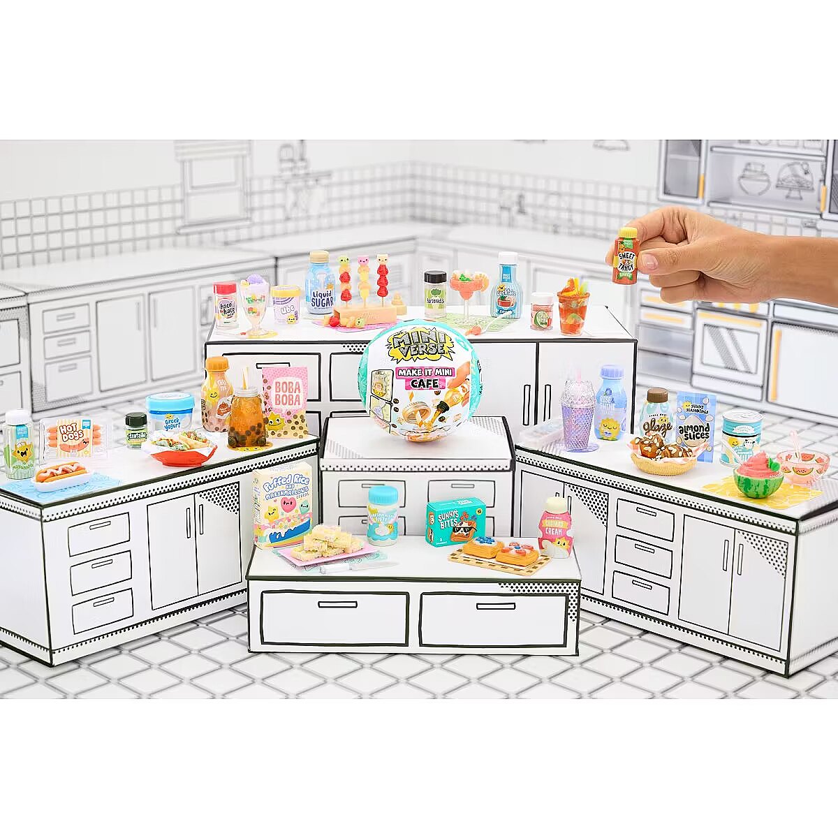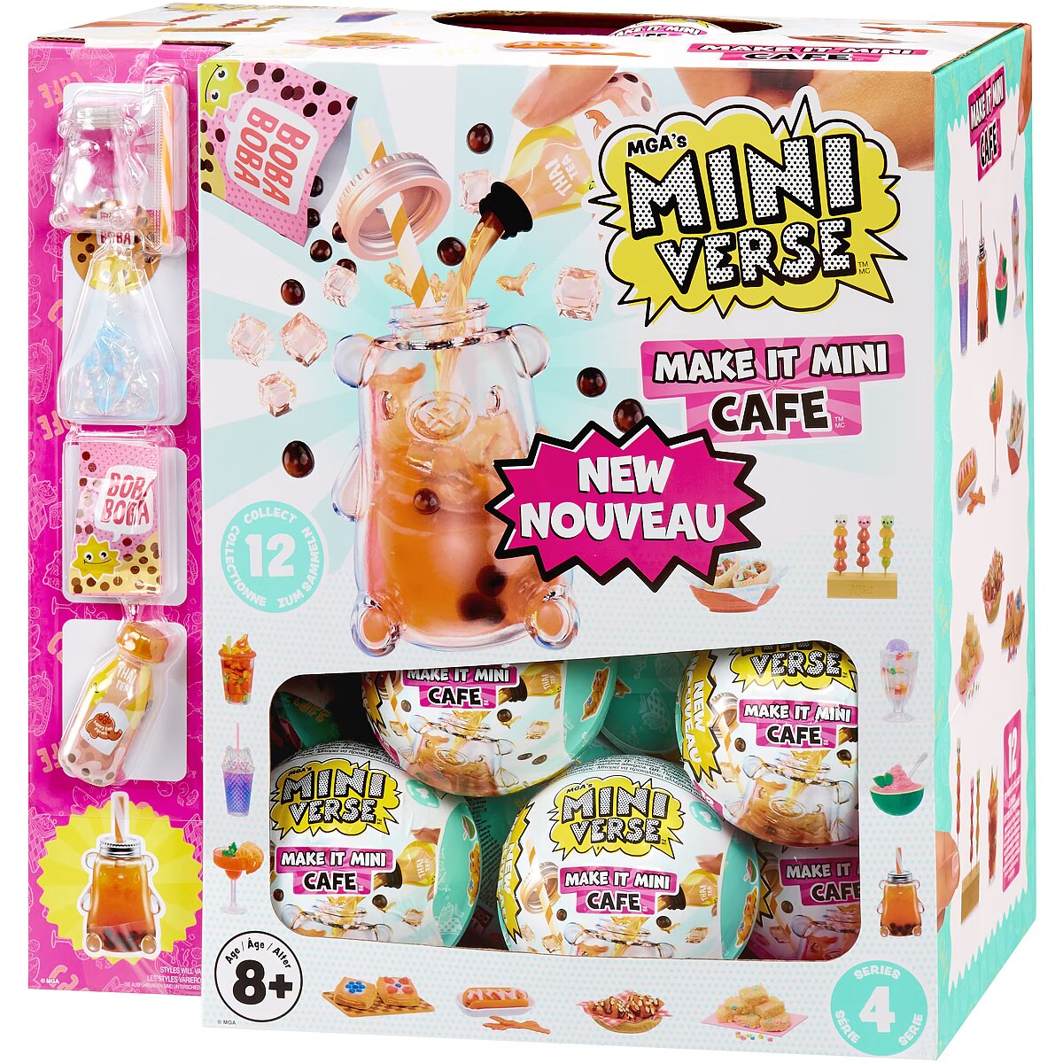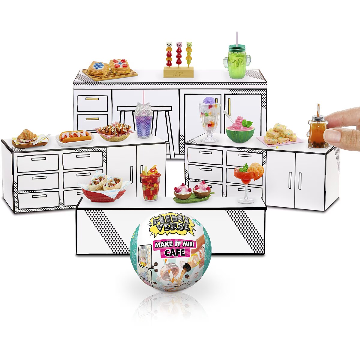 LongDesc - MAKE IT MINI CAFE™! All your favorite foods now in mini form! MGA's Miniverse™ is the ORIGINAL mini collectible that you can MAKE, SET, & DISPLAY.Each ball comes with realistic mini ""ingredients"" and accessories to make your own mini replicas of your favorite snacks and desserts! Each package is a SURPRISE so you won't know which mini you have until you unbox it! Compare the contents of your package with the included collector's guide, to see which mini you have. Follow the ""recipe"" card on the back to make your mini. Once you've finished making your mini, set your replica under the sun or a 365nm UV Light until the resin has hardened. Once it's set, you've got a collectible ready for display! Set your Miniverse collectible in your capsule that doubles as a display!The fun doesn't stop there! Your finished replica is not the only item worth collecting. From mini replica versions of Halo-Halo, to Tanghulu, to a Bacon-Wrapped Hotdog - there are so many unique Make It Mini Cafe™ Series 4 replica ingredients, packages, and accessories to make and collect your very own mini collectibles. Collect all the Series 4 Make It Mini Cafe™ Collectibles! Visit the MGA's Miniverse™ Store to shop and learn more about all the MAKE IT creations you can collect!DISCLAIMER: ALL Ingredients are NOT edible and do include resin play. Not suitable for kids under 8 years of age.