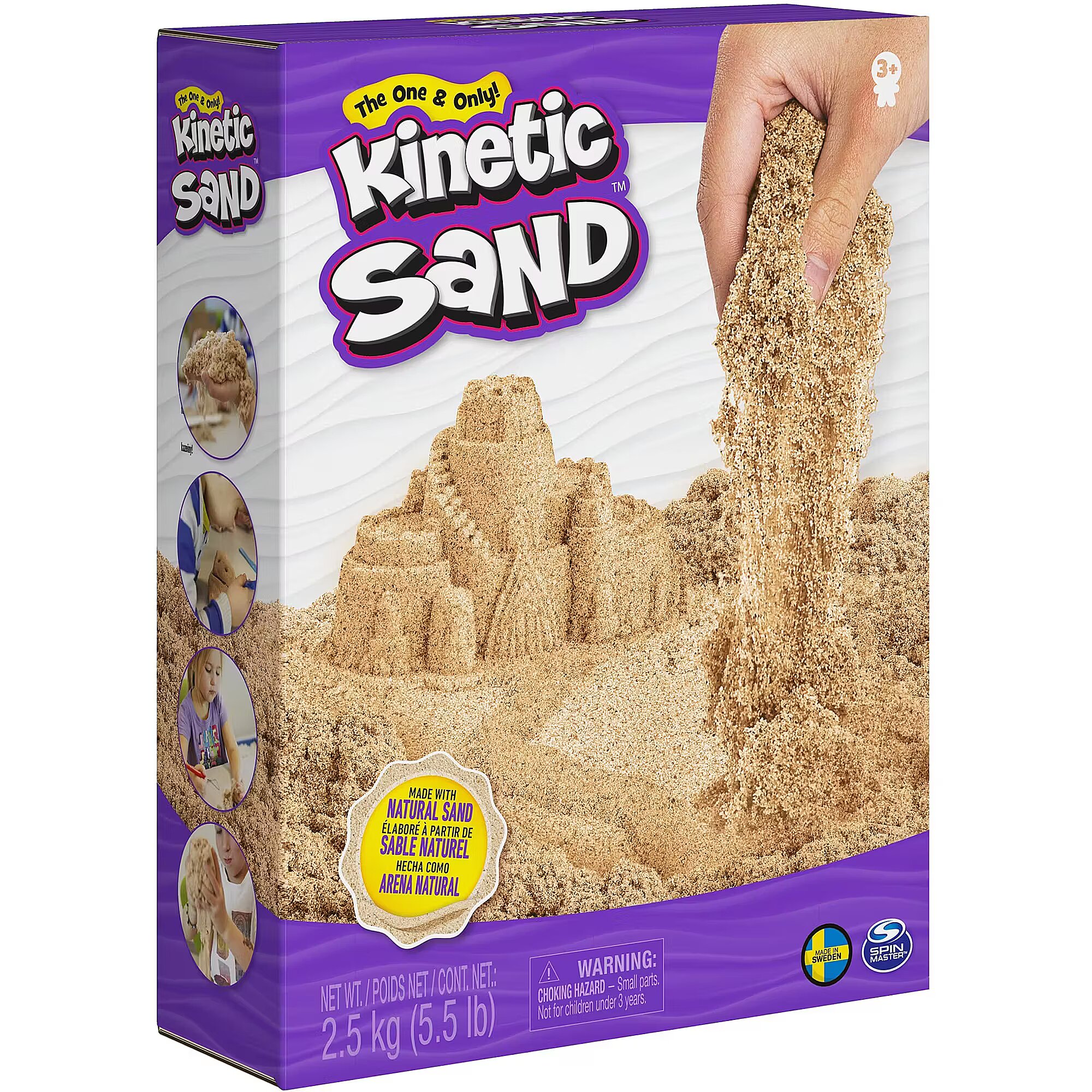 LongDesc - Create anything you can imagine with 2.5kg (5.5lb) of natural brown Kinetic Sand sensory sand. Squish it, mix it, cut it, mold it, or scoop it – the possibilities are endless. The One and Only Kinetic Sand is made from natural sand that sticks to itself for easy cleanup and never dries out. Let it flow through your hands – it’s so satisfying, you won’t be able to put it down. An alternative to arts and crafts modeling clay, Kinetic Sand is a welcome addition to the sensory bin, activities time and Montessori toys. Kinetic Sand promotes fine motor skills and is suitable for individual or group play, encouraging social interaction. Discover Kinetic Sand colored sand, playsets and Kinetic Sand kits for even more ways to play. Experience creativity that feels good with 2.5kg (5.5lb) of natural brown Kinetic Sand.Includes: 2.5kg (5.5lb) Kinetic Sand