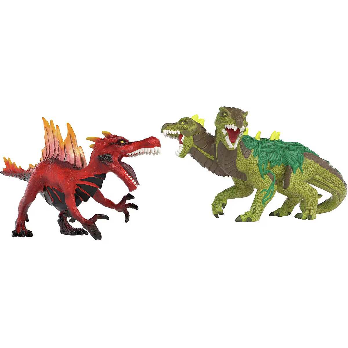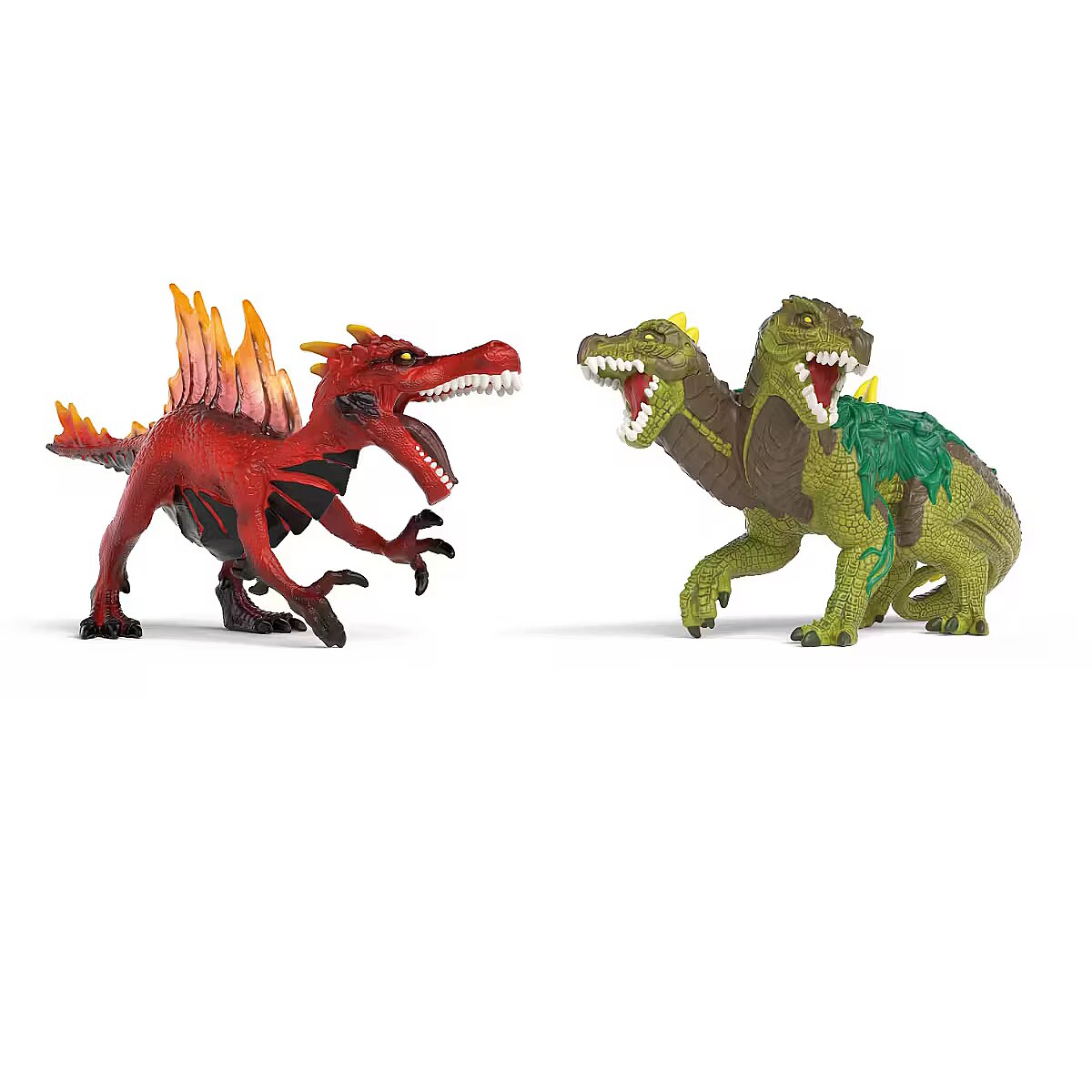 LongDesc - The Fire Dinosaurs and Jungle Lizards clash in a nerve-racking battle! The Fire Dinosaur lets out a mighty roar and bares its razor-sharp teeth. Oh no! The Jungle Lizard has two heads. With two powerful jaws, it’s ready to crush its attacker. Who will emerge victorious in this battle? Better keep your distance!Who will claim victory here? The red Fire Dinosaur, with its flaming lizard comb and menacing yellow eyes? Or the Jungle Lizard, with its green back armour made of lianas and its two fearsome heads? Both warriors are fighting to the bitter end. Its terrifying roar can be heard from miles away. Horrifying! Run for cover before innocent bystanders get caught in the crossfire! Help!