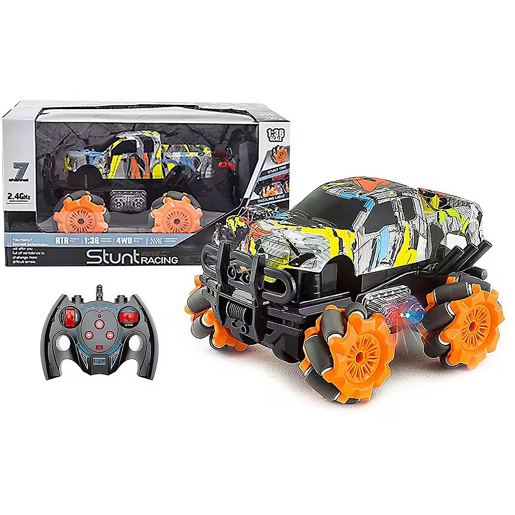 Aprašymas - R/C automobilis, galintis apsisukti 360 laipsnių kampu Apšvietimo efektai Baterijos: 3,7 V (automobilis) įtrauktos, 2 x AA 1,5 V (nuotolinio valdymo pultas) neįtrauktos