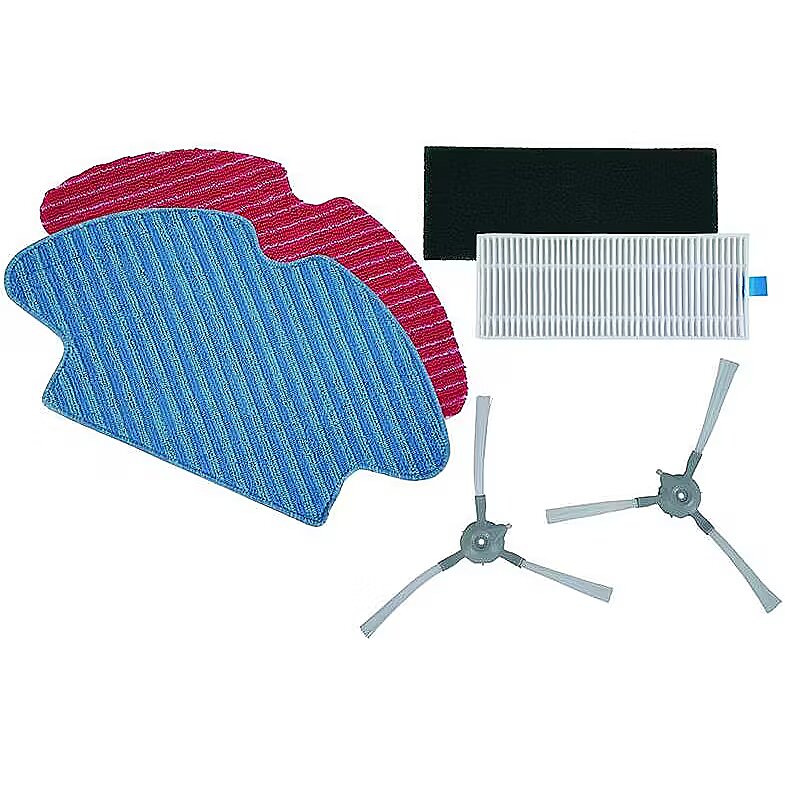 VidutinisAprašymas LV - Šis priedų rinkinys, kuris veiksmingai kovoja su naminių gyvūnėlių plaukais ir palengvina namų švaros palaikymą, yra suderinamas su robotu dulkių siurbliu "X-plorer S75" ir jį sudaro: - 2 šoniniai šepetėliai kampams ir sunkiai pasiekiamoms vietoms; - 1 didelio tankio pluošto šluostė naminių gyvūnų plaukams ir įsisenėjusioms dėmėms šalinti (raudona šluostė); - 1 standartinė vidutinio tankio pluošto šluostė: minkšta, tinkama visų tipų grindims, įskaitant smulkias grindis (mėlyna šluostė); - 1 didelio efektyvumo filtras: filtruoja iki 99 proc.Didelio efektyvumo filtras. Kad išlaikytumėte roboto dulkių siurblio siurbimo galią, šluostes rekomenduojama keisti kas 100 plovimų, šoninius šepetėlius valyti kartą per mėnesį ir keisti du kartus per metus, o filtrą - du kartus per metus.