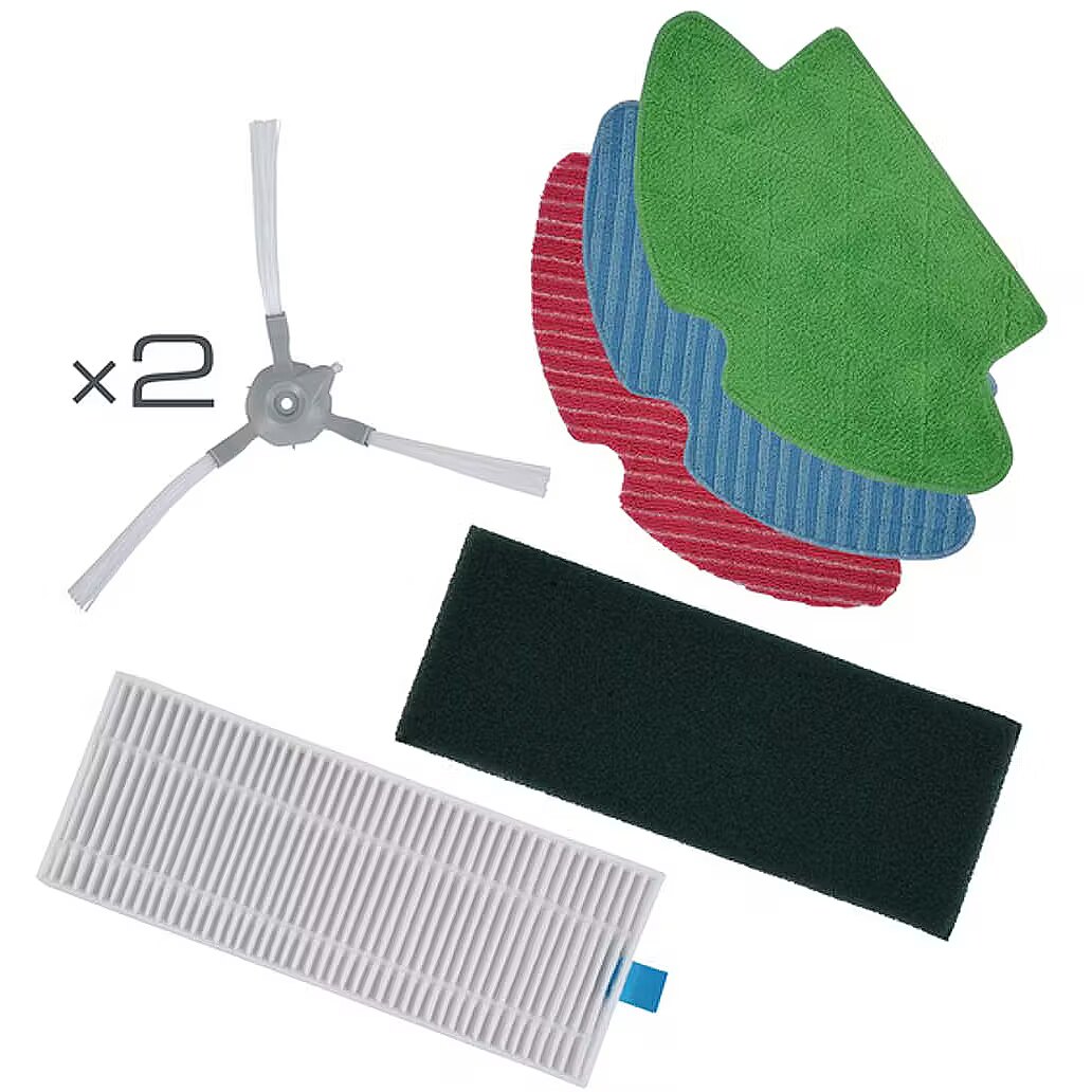 VidutinėAprašymas ET - "X-plorer S75" robotų dulkių siurblių valymo rinkinį sudaro: - 1 standartinė vidutinio tankio pluošto šluostė: minkšta, tinkama visų tipų grindims, įskaitant švelnias grindis (mėlyna šluostė), - 1 didelio tankio pluošto šluostė gyvūnų plaukams ir įsisenėjusioms dėmėms valyti (raudona šluostė), - 1 mikropluošto šluostė nuo alergenų: 2 šoniniai šepetėliai kampams ir sunkiai pasiekiamoms vietoms - 1 didelio efektyvumo filtras: filtruoja iki 99,9 proc. dulkių alergenų Norėdami išlaikyti dulkių siurblio roboto siurbimo našumą, rekomenduojame šluostes keisti kas 100 plovimų, šoninius šepetėlius valyti kartą per mėnesį, o šoninius šepetėlius ir filtrus - du kartus per metus.