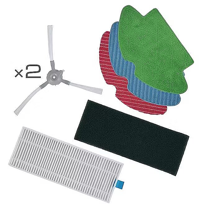 • 1 high performance filter: filters up to 99.9% of dust allergens In order to maintain your robot's suction power, we recommend changing wipes every 100 washes, cleaning side brushes once a month and replacing them twice a year and changing your filter twice a year.