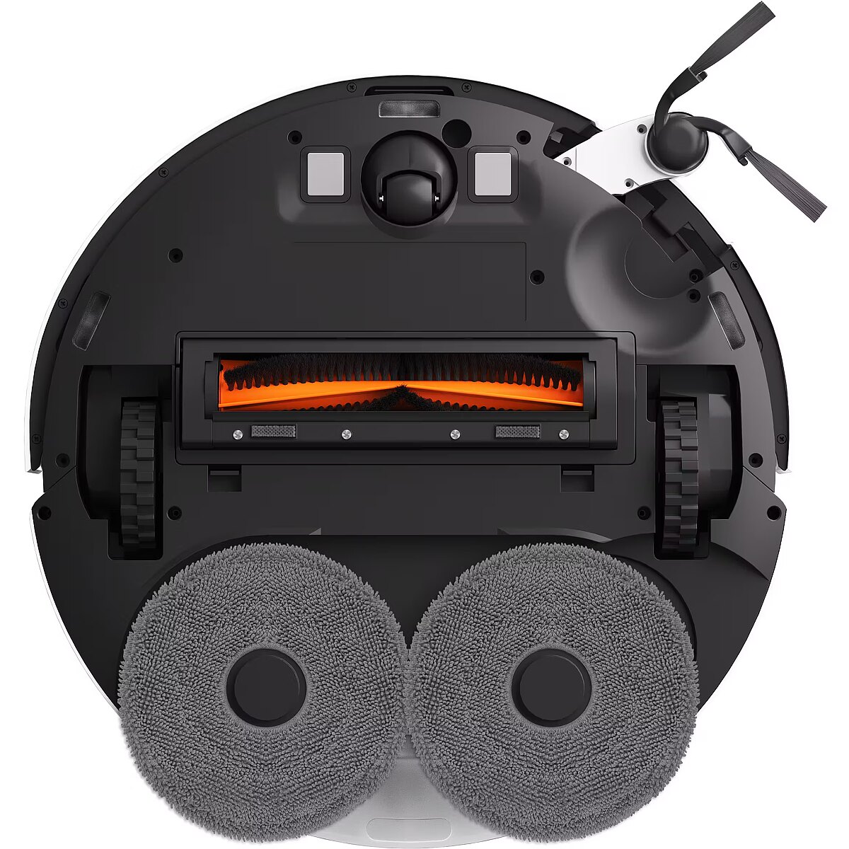 Accessories included - Robot vacuum cleaner Side brush Main brush (pre-installed on the main unit) Brush cover (pre-installed on the main unit) Dustbin (pre-installed, required for vacuuming and mopping) Water tank (pre-installed, required for vacuuming and mopping) 2 × Mop holders 2 × Mop pads (pre-installed on mop holders) Charging station Power adapter User manual Illustrated guide Warranty information
