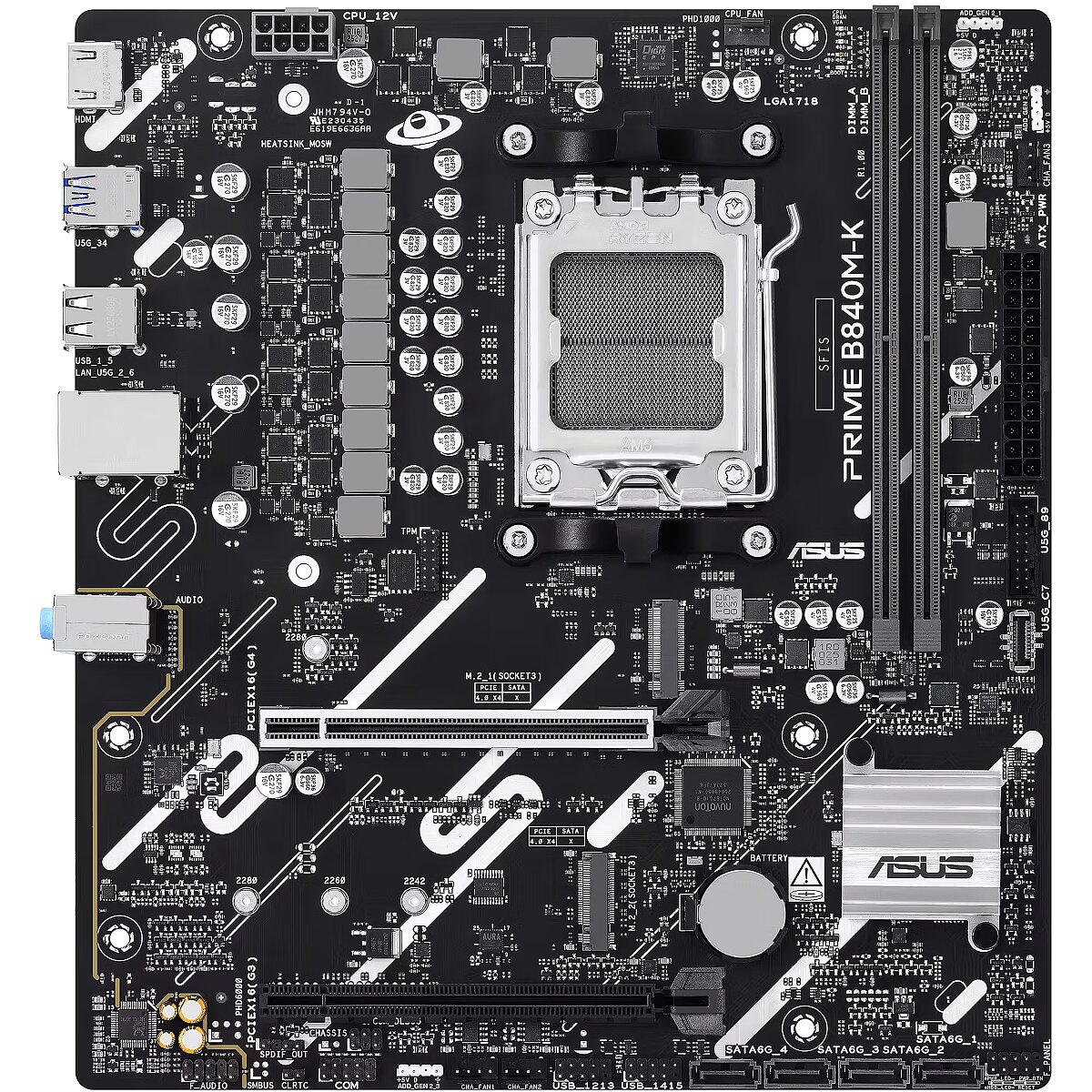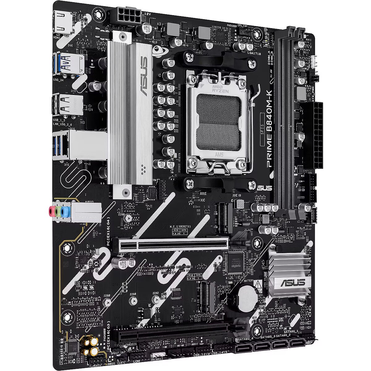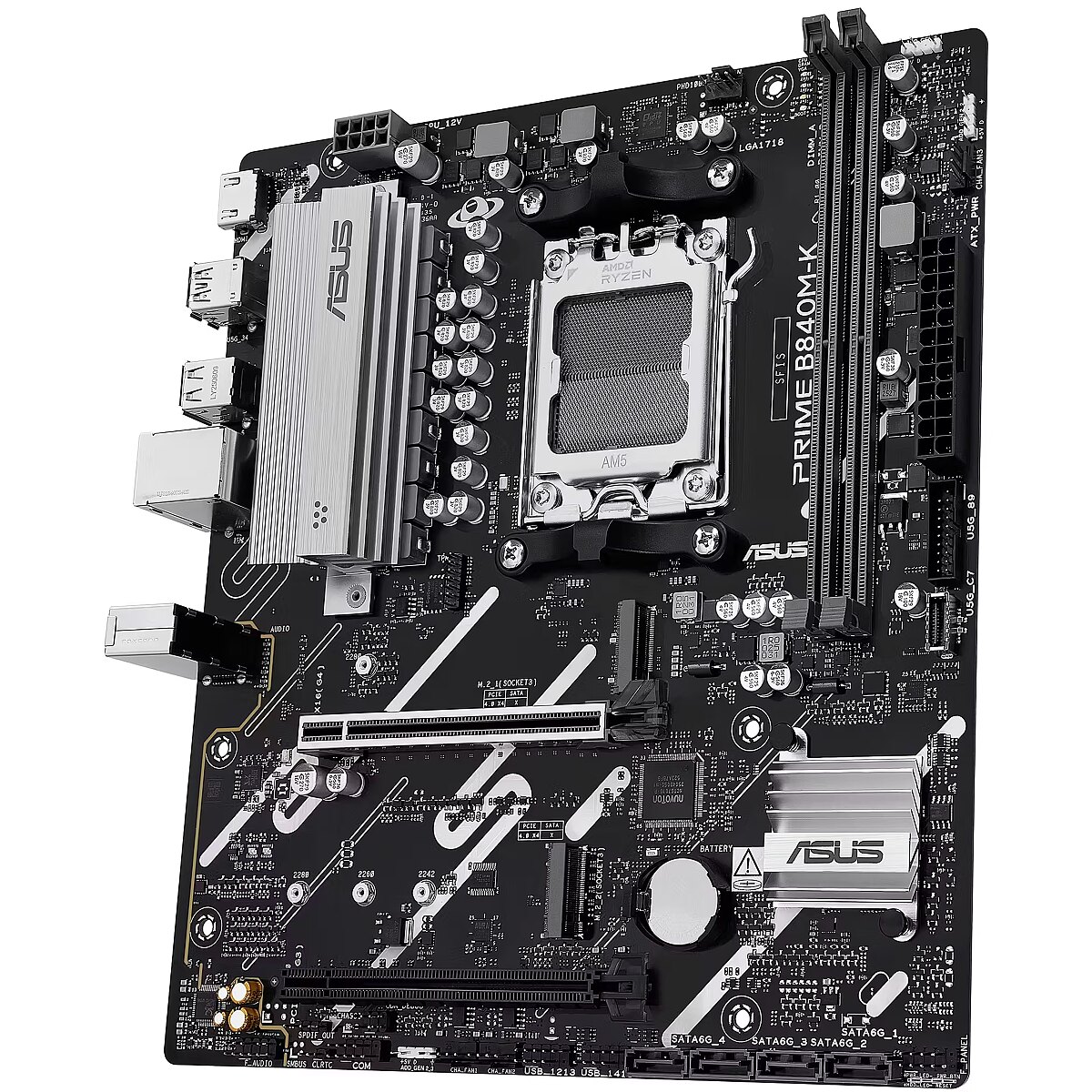 ShortSummaryDescription - ASUS PRIME B840M-K, AMD, Socket AM5, AMD Ryzen 7000 Series, AMD Ryzen 8000 Series, AMD Ryzen 9000 Series, Socket AM5, DDR5-SDRAM, 128 GB