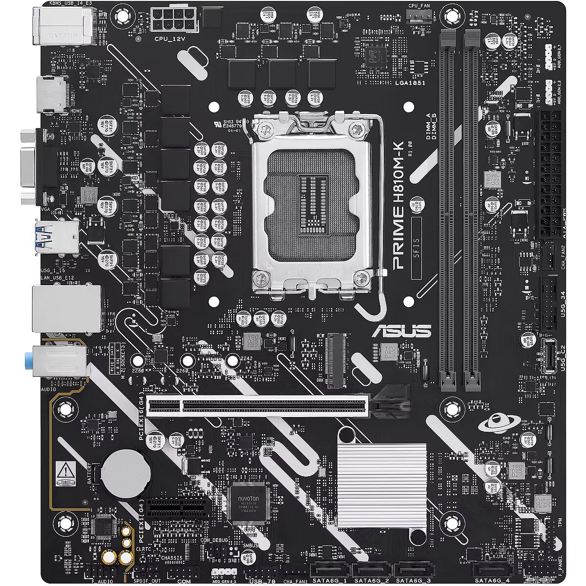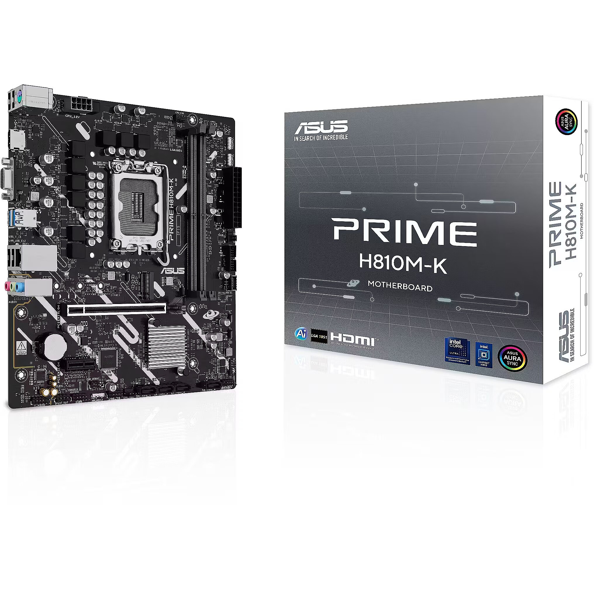 LongProductName - PRIME H810M-K Intel H810 LGA1851 micro-ATX (Advanced AI PC-ready, DDR5, PCIe 4.0, HDMI, VGA, USB 5Gbps, USB 5Gbps Type-C, M.2, Realtek 1Gb Ethernet, Aura Sync)