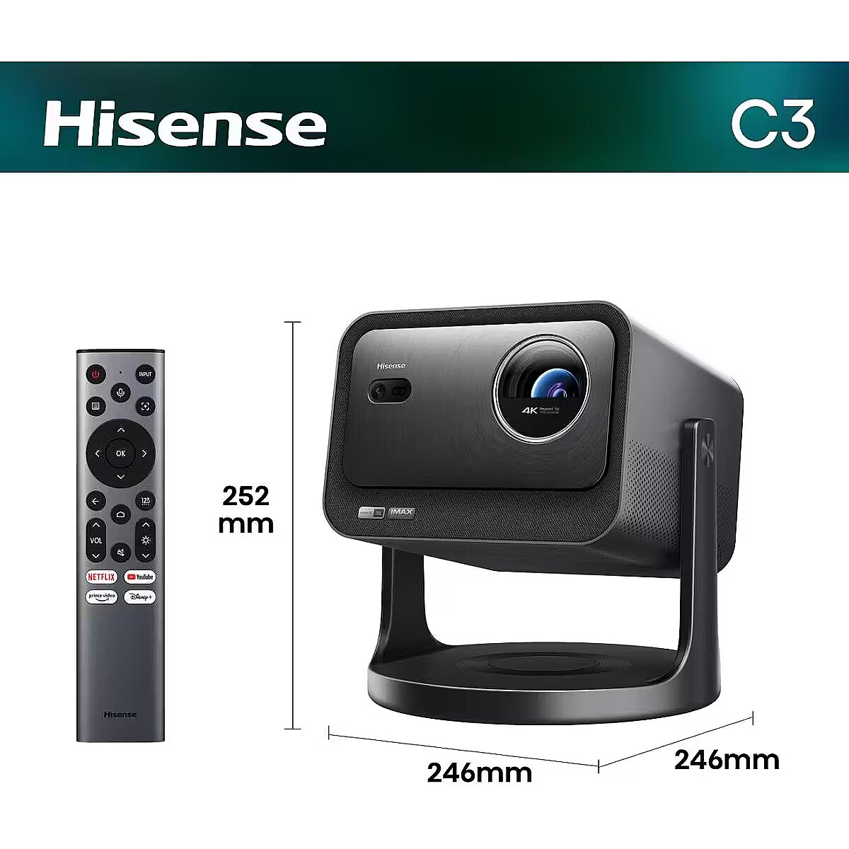 ShortSummaryDescription - „Hisense C3“, DLP, UHD 4K (3840x2160), 2000:1, 16:9, 1651–7620 mm (65–300 colių), 1,07 mlrd. spalvų