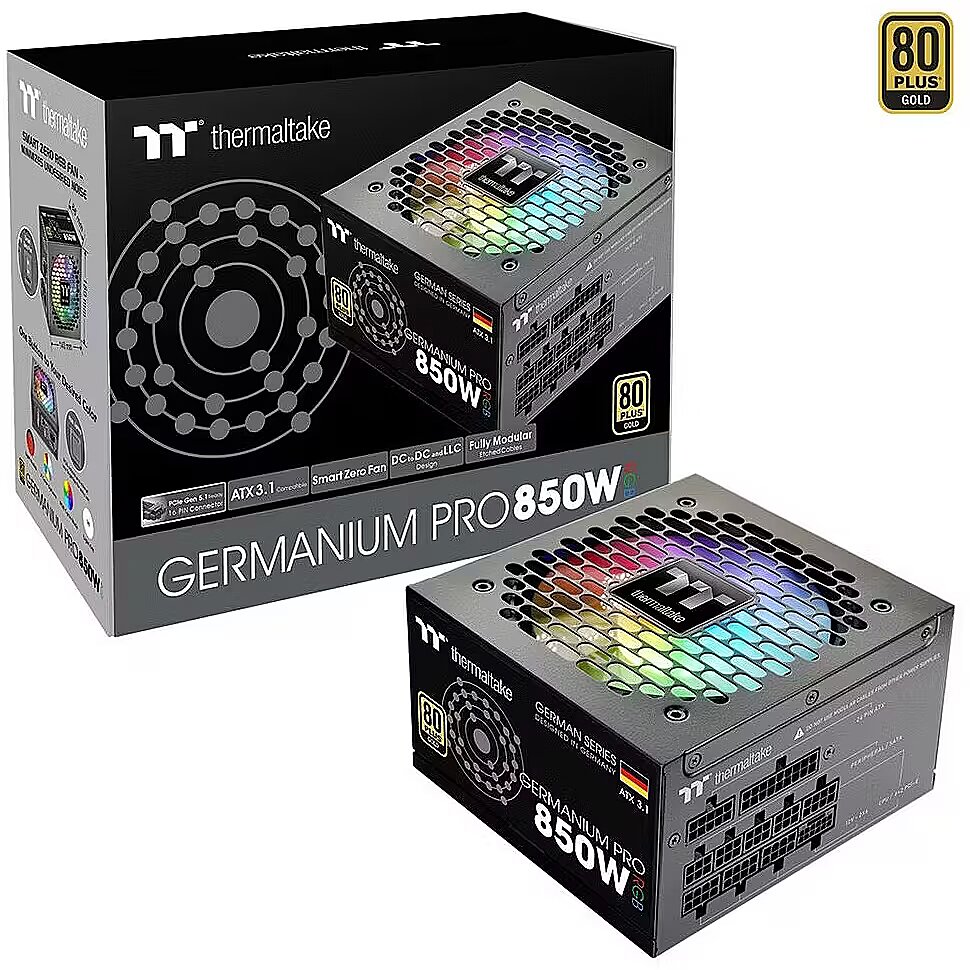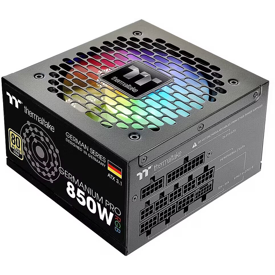 Name - Thermaltake Germanium Pro RGB 850W (black, 1x 12-pin high power GPU, 4x PCIe, cable management, 850 watts)