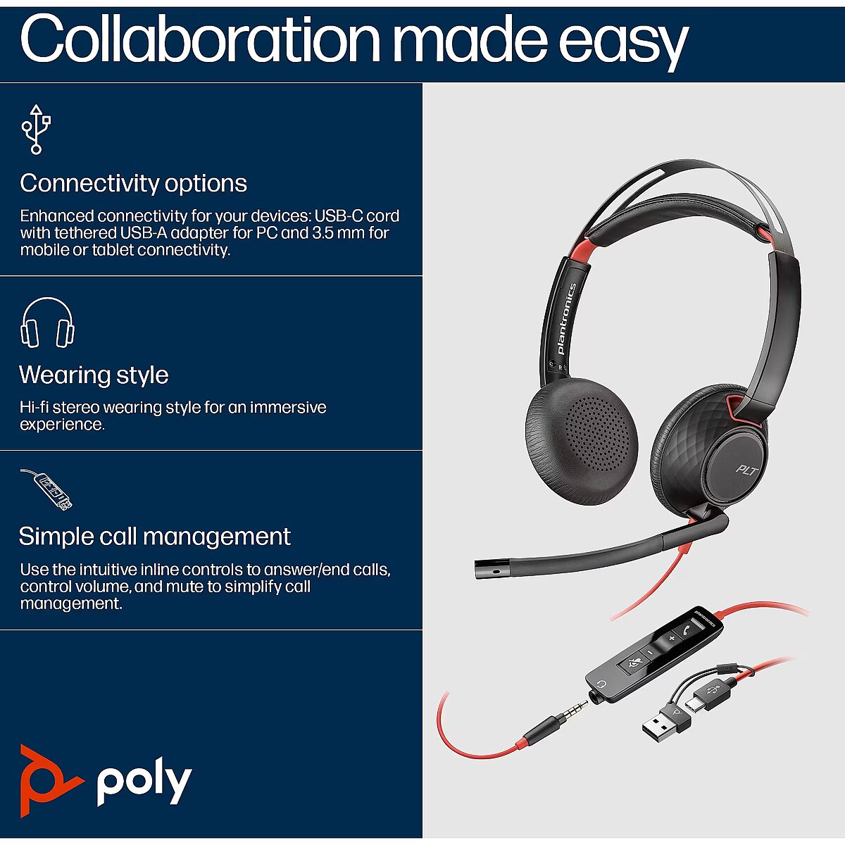 Title - HP Poly Blackwire 5220 Stereo USB-C Headset +3.5mm Plug +USB-C/A Adapter