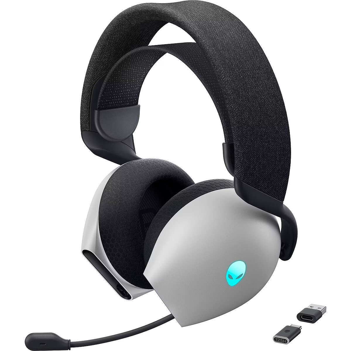 Title - Alienware AW725H Headset Wired & Wireless Head-band Gaming USB Type-C Bluetooth Black, White