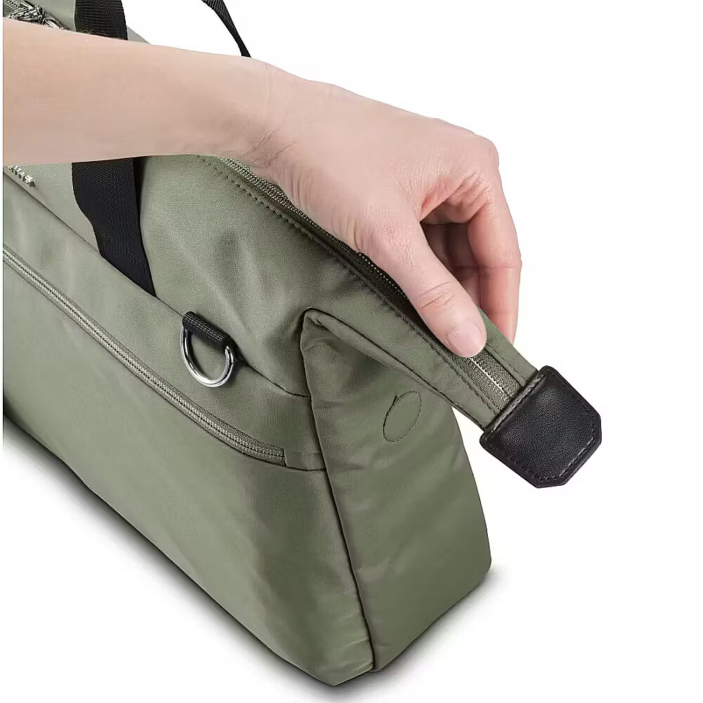 LongDesc - Padded laptop compartmentThick padding: the laptop bag with padded laptop compartment. offers reliable protection during transportTablet pocketAdditional tablet pocket for tablets up to 28 cm (11") in the main compartmentWide zip fastenerSimply open wide: the 2-way zip is longer than the width of the main compartment, which makes it easier to pack and search in the bag, the laptop can be removed more easily, etc.Magnetic safety catch on the zipCompact and safe: the protruding ends of the wide zip can be attached to the side of the laptop bag with magnets - useful design accent in a faux leather lookWater-repellent outer materialEven if the weather is in a foul mood, the laptop is protected from moisture in the water-repellent outer materialReinforced, water-repellent baseWater-repellent and additional protection: The reinforced base of the bag ensures a secure stand, can be wiped clean and protects against dirt and moistureTrolley strapHandy trolley holder: the business laptop bag with suitcase loop can be conveniently and securely attached to the trolley handle - giving an optimised grip on business trips without sliding aroundPadded shoulder strapA laptop shoulder strap or for carrying: the padded shoulder strap for comfortable carrying can be removed and its length adjusted, ensuring the shoulder bag sits perfectly on the shoulderSheathed handlesHigh-quality laptop bag with briefcase flair: practical handles with reinforced material for a pleasant carrying experience