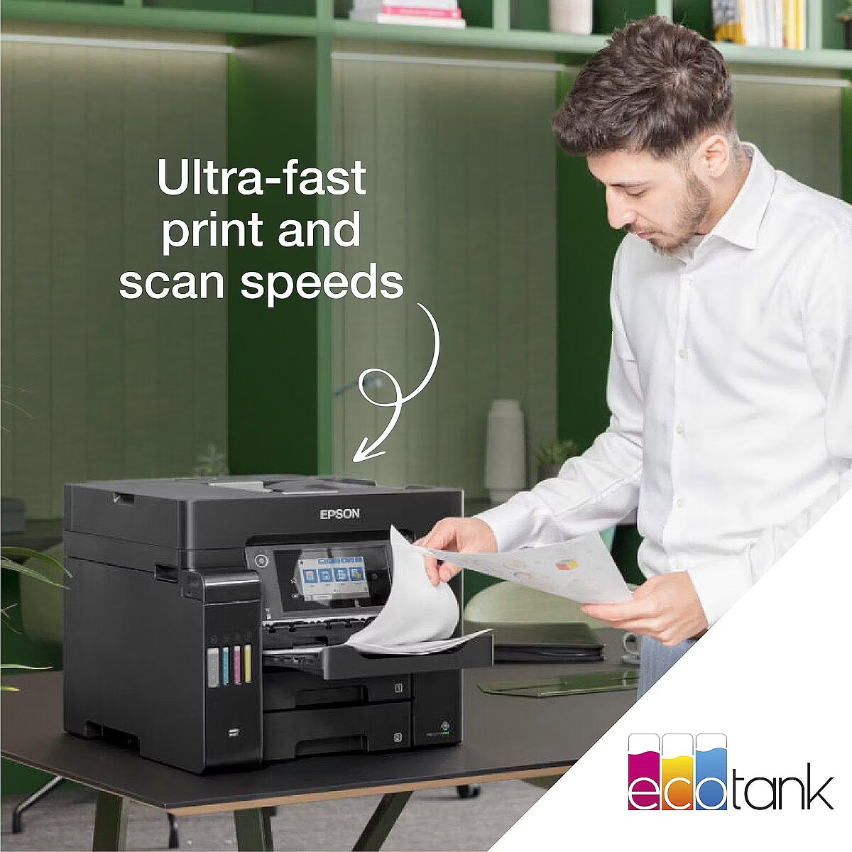 LongDesc - Get more done in less timeGet the edge with this fast and efficient printer that can deliver a first page in as little as 5½ seconds*. Coupled with fast double-sided printing, and a high speed Automatic Document Feeder, you’ll be able to speed through everyday tasks.Feature-rich A4 EcoTankThe ET-5805 is designed for office tasks with A4 print, scan, copy and fax. Selecting features is easy with the LCD touchscreen.Keep on savingSave every time you print with this EcoTank that delivers an incredibly low cost per page. Unlike other printers, EcoTank features large ink tanks that you fill with low-cost ink bottles.End interuptionsMinimising refills, this EcoTank can print thousands of pages before needing more ink, while the two front paper trays offer a capacity of 500-sheets. Free yourself from manual page loading with a generous 50-sheet rear feed and A4 ADF.Print from almost anywhereWith Wi-Fi and Wi-Fi Direct, you can send documents to print from smart devices using the Epson Smart Panel app*. Also features Ethernet.Easy to use and reliableFilling the large front ink tanks is simple with the resealable, intuitive and drip-free ink bottles. The Heat-Free PrecisionCore printhead is renowned for its speed, quality, reliability and efficiency, and will last the lifetime of the printer.