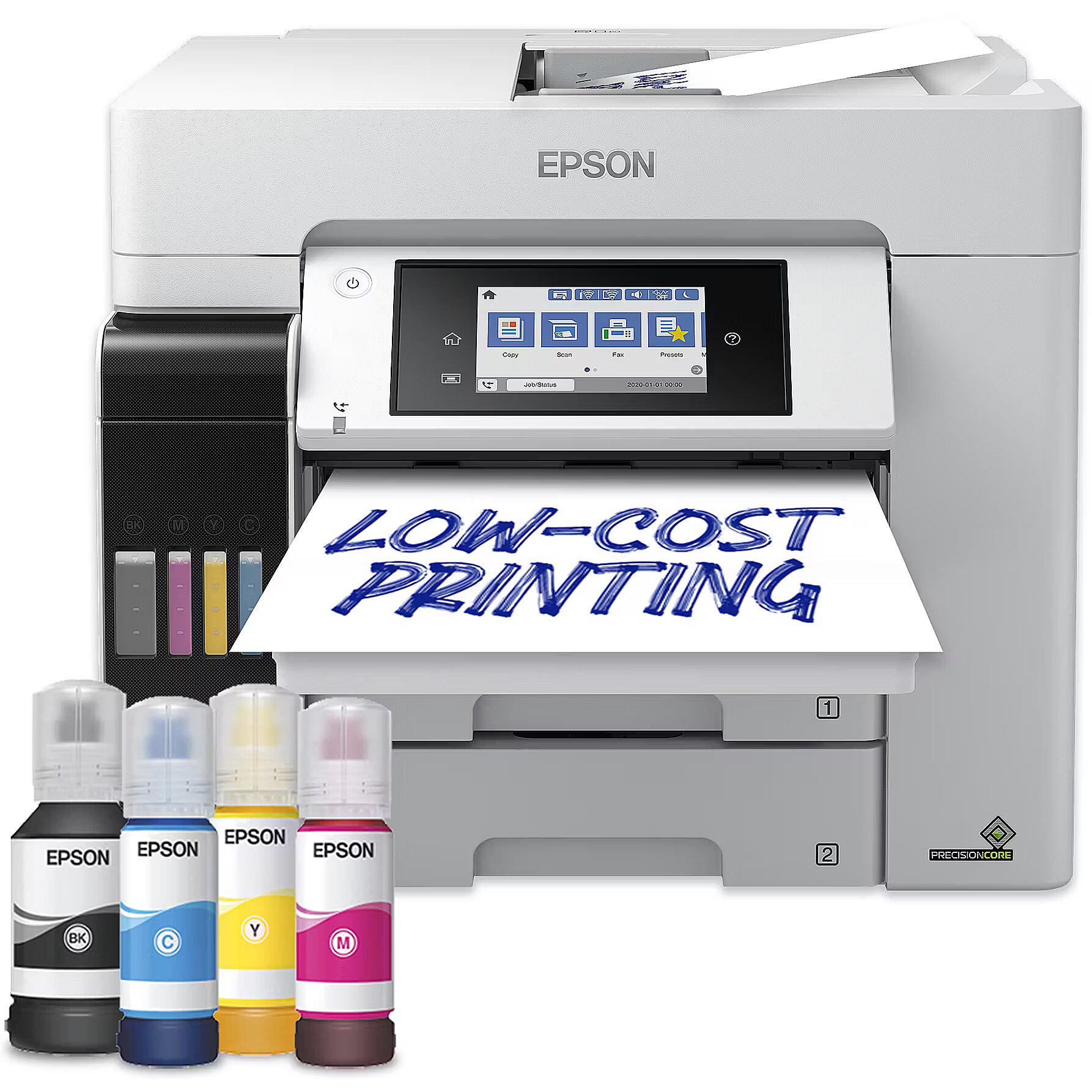LongDesc - Keep on savingSave every time you print with this EcoTank. It features large ink tanks that you fill with low-cost ink bottles, delivering incredibly low costs-per-page. Thanks to Heat-Free PrecisionCore technology, you can also keep your energy consumption down to a minimum, saving on energy billsTime-saving featuresOur fastest A4 device in its class, the ET-5885 offers a first page out time of just 5.5 seconds* and print speeds up to 25 pages per minute. The automatic document feeder can scan up to 27.5 images per minute.Low user interventionMinimising refills, this EcoTank can print thousands of pages before needing more ink, while the two paper trays offer a capacity of 500-sheets. Free yourself from manual page loading with a generous 50-sheet rear feed and A4 ADF.Easy to use and reliableSelecting features is easy with the LCD colour touchscreen. And refilling the large front ink tanks is simple with the resealable, intuitive and drip-free ink bottles.Print from almost anywhereIt's easy to print from mobiles, tablets and laptops using the ET-5885. With Wi-Fi and Wi-Fi Direct, you can send documents to print from smart devices using the Smart Panel app*. Also features Ethernet and PCL support.Business-quality printingThe EcoTank 113 ink series features all pigment inks for smudge, water and highlighter resistant prints. One set of replacement inks can print up to 7,500 pages in black and 6,000 pages in colour*