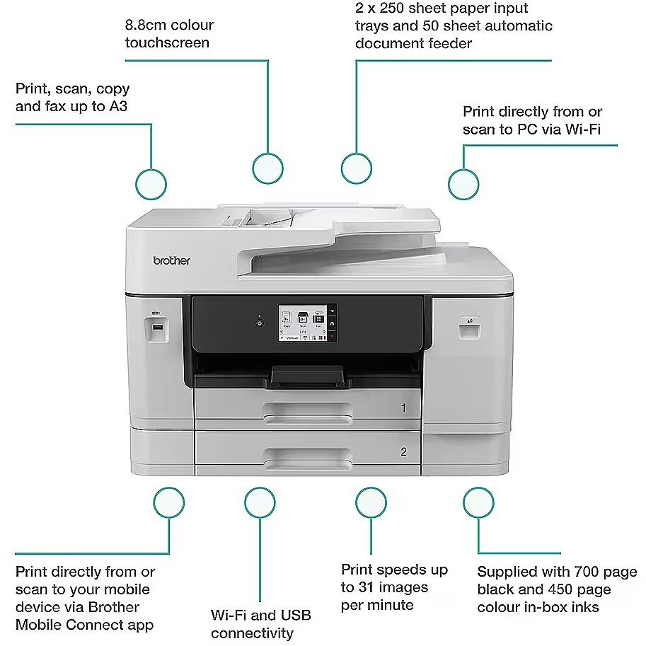 Aprašymas - BROTHER MFC-J6960DW INKJET 4-IN-1, A3, ADF, DUPLEX, WIFI, 2 DĖKLAI, 31IPM