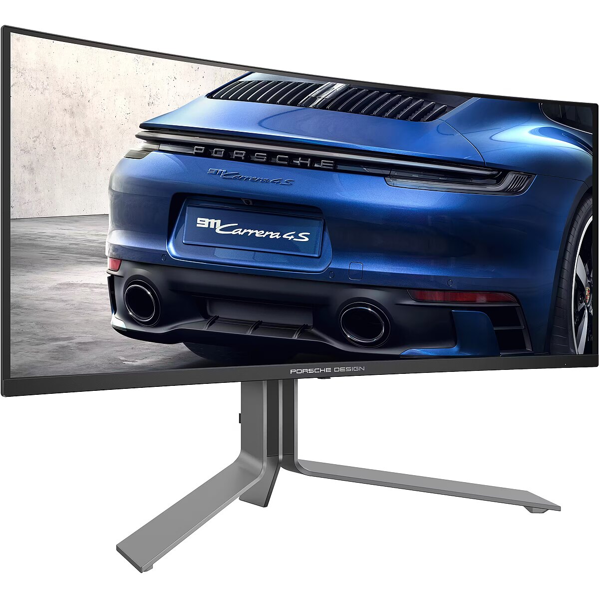 LongDesc - Elevate your performance with the Porsche Design 34-inch WQHD Curved OLED Monitor. Experience a 240Hz refresh rate and HDR TrueBlack 400 for unparalleled visual excellence!Step into a new realm of performance with the PD34, a 34-inch WQHD (21:9) curved monitor, crafted in collaboration with Porsche Design, features cutting-edge QD-OLED technology for unmatched color precision and profound contrasts. With a blazing-fast 240Hz refresh rate and HDR TrueBlack 400, every detail comes alive with stunning clarity and vibrant visuals, perfect for both gaming and creative work. Equipped with a comprehensive connectivity suite including USB-C, KVM, and HDMI 2.1, along with a versatile USB hub and an ergonomic stand for optimal comfort, the PD34 offers the ultimate in convenience and productivity. Backed by a 3-year burn-in warranty, the Porsche Design PD34 is your gateway to exceptional performance, style and sophistication.