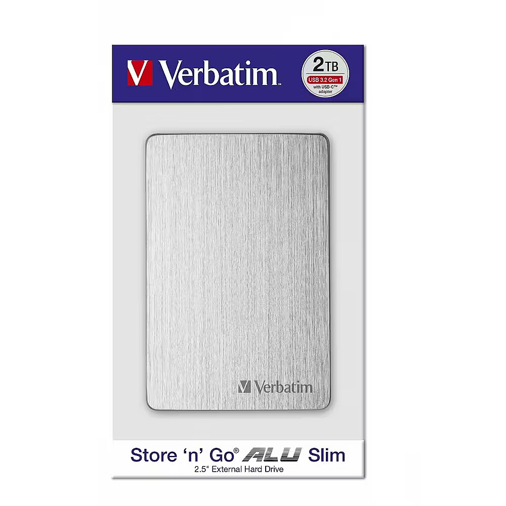 Description - The Verbatim Store n Go ALU 2TB is a stylish and functional portable hard drive designed for convenient data storage and transfer. Its brushed aluminum casing boasts a modern look and robust build quality, while its compact size makes it easy to carry to work, home, or on the go. Its slim design, measuring 9mm thick and weighing just 150g, ensures comfortable everyday use.