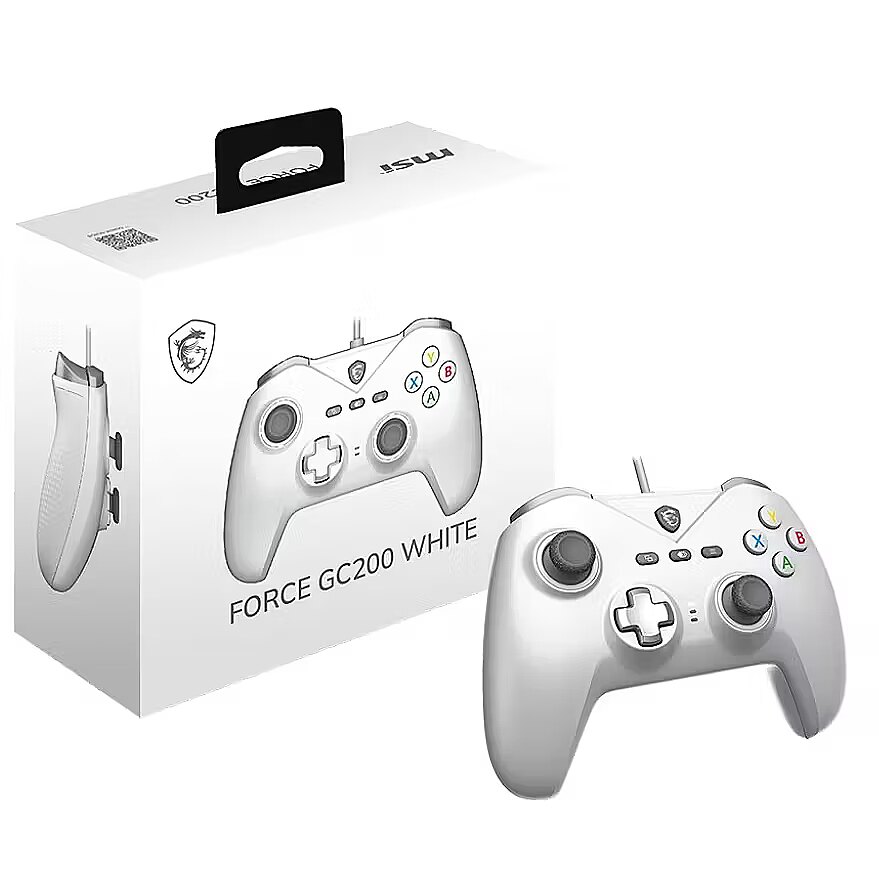 LongSummaryDescription - MSI FORCE GC200 WHITE. Device type: Gamepad, Gaming platforms supported: Android, PC, Gaming control function buttons: Back button, D-pad, Macro button, Power button, Start button, Turbo button. Connectivity technology: Wired, Device interface: USB. Product colour: White, Cable length: 2 m. Power source: Cable. Windows operating systems supported: Windows 10, Windows 7, Windows 8.1
