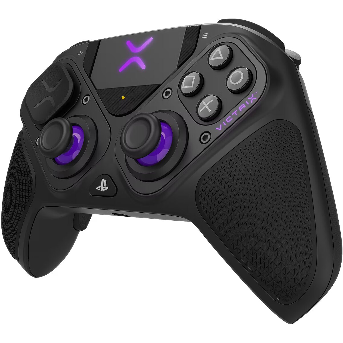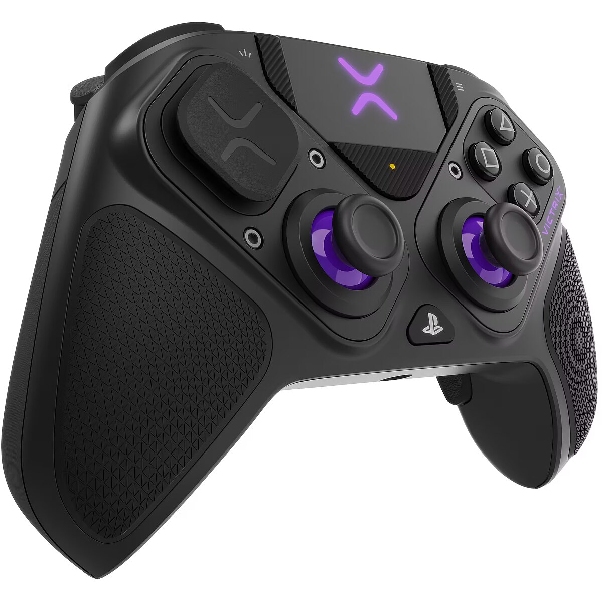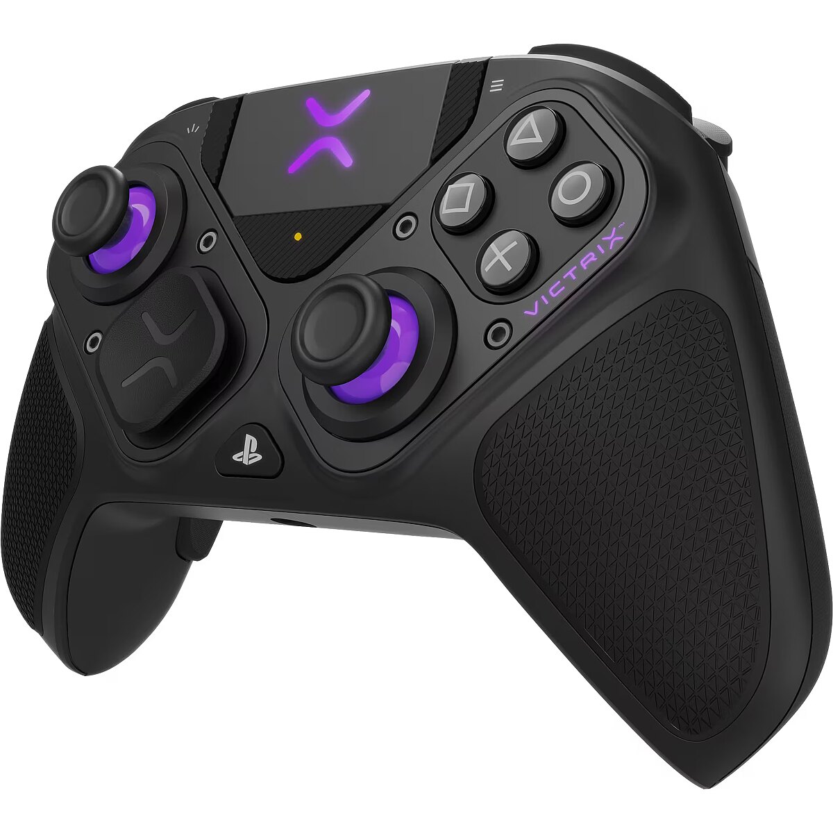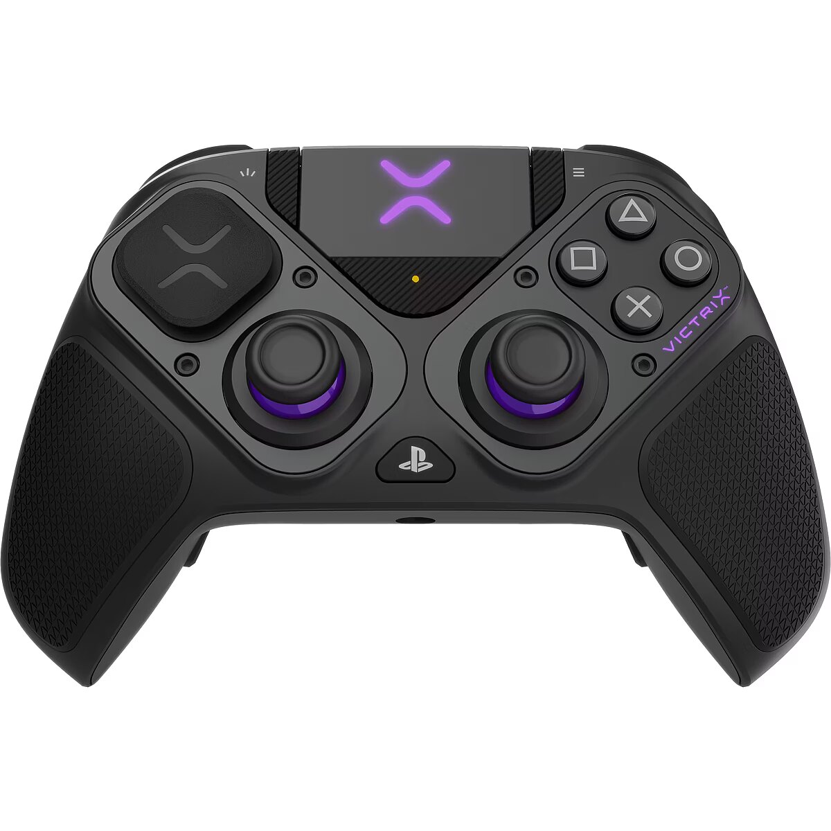 LongSummaryDescription - PDP Victrix Pro BFG for PlayStation 5, PlayStation 4, and Windows 10/11 PC. Device type: Gamepad, Gaming platforms supported: PC, PlayStation 4, PlayStation 5, Gaming control function buttons: D-pad, Menu button, Options button, Share button. Connectivity technology: Wired & Wireless, Device interface: RF/USB, USB connector type: USB Type-C. Product colour: Black, Housing material: Acrylonitrile butadiene styrene (ABS), Polymer, Cable length: 3 m. Power source: Cable/Battery, Battery type: Built-in, Battery capacity: 2000 mAh. Processor family: Victrix, Processor frequency: 0.5 GHz